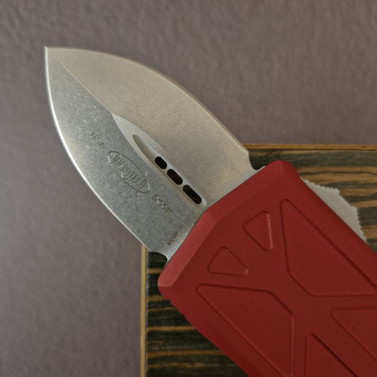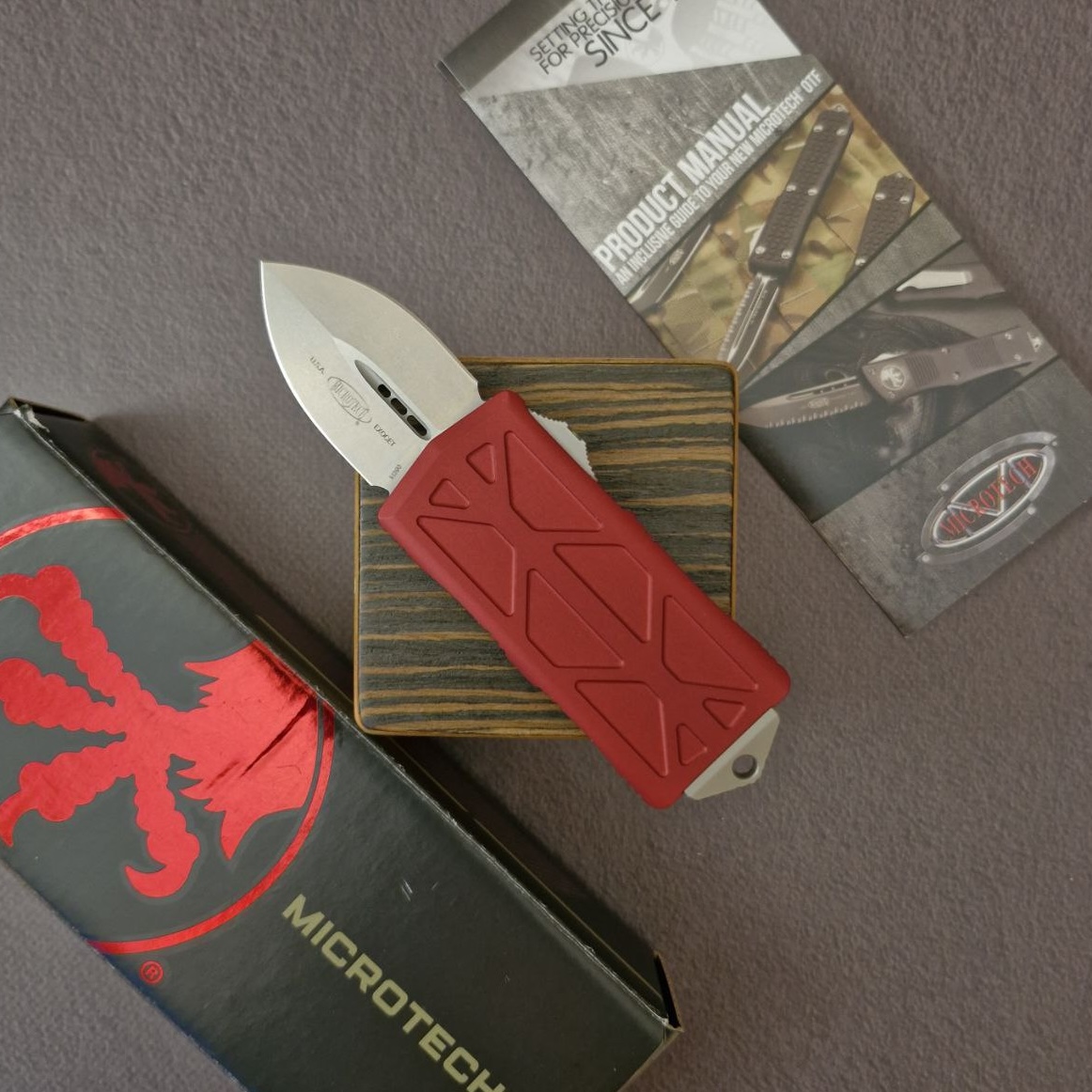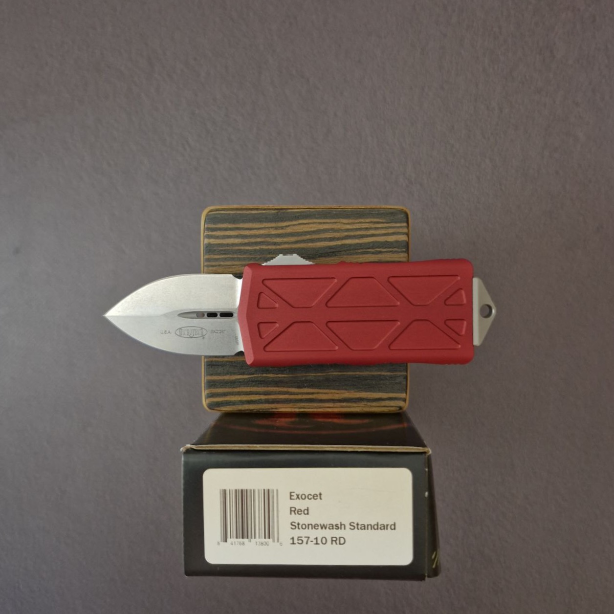 Вітаю спільноту! Пропоную придбати ніж Microtech Exocet 157-10RD Stonewash Blade Red Exocet — це компактний ніж типу out-the-front (OTF) з автоматичною подвійною дією та лезом менше 50мм. Ідеєю ножа була легалізація в Штатах та країнах, де заборонені леза довжиною більше 2 дюймів. Його зовнішній вигляд може здивувати Вас при першому погляді, але після спуску замка стає зрозуміло що це все ж таки в першу чергу ніж. До того ж, його широка й тонка кліпса для кишені дозволяє використовувати його як стильний затискач для грошей. І навіть в такого малюка на клинку преміальна порошкова сталь М390, а руківʼя з алюмінієвого сплаву. Новий, оригінал, привезений з США Загальна довжина: 142 мм; Довжина клинку: 50 мм; Товщина клинку: 1,5 мм; Механізм відкриття, замок: OTF; Покриття/обробка леза: Stonewash; Матеріал руків’я: Aluminum 6061-T6; Кліпса 2-позиційна; Вага: 85 г. Мої інші теми: Microtech Glykon Bayonet OD Green Apocalyptic Standard Microtech Socom Alpha Mini T/E Apocalyptic Zero Tolerance Hinderer ZT 0562TI Benchmade Adamas D2 Black G-10 275BK Microtech MSI Ram-Lok OD Green/Black Blade Spyderco Endura 4 Emerson Wave Cold Steel SRK SK-5 Cold Steel SRK Compact SK-5