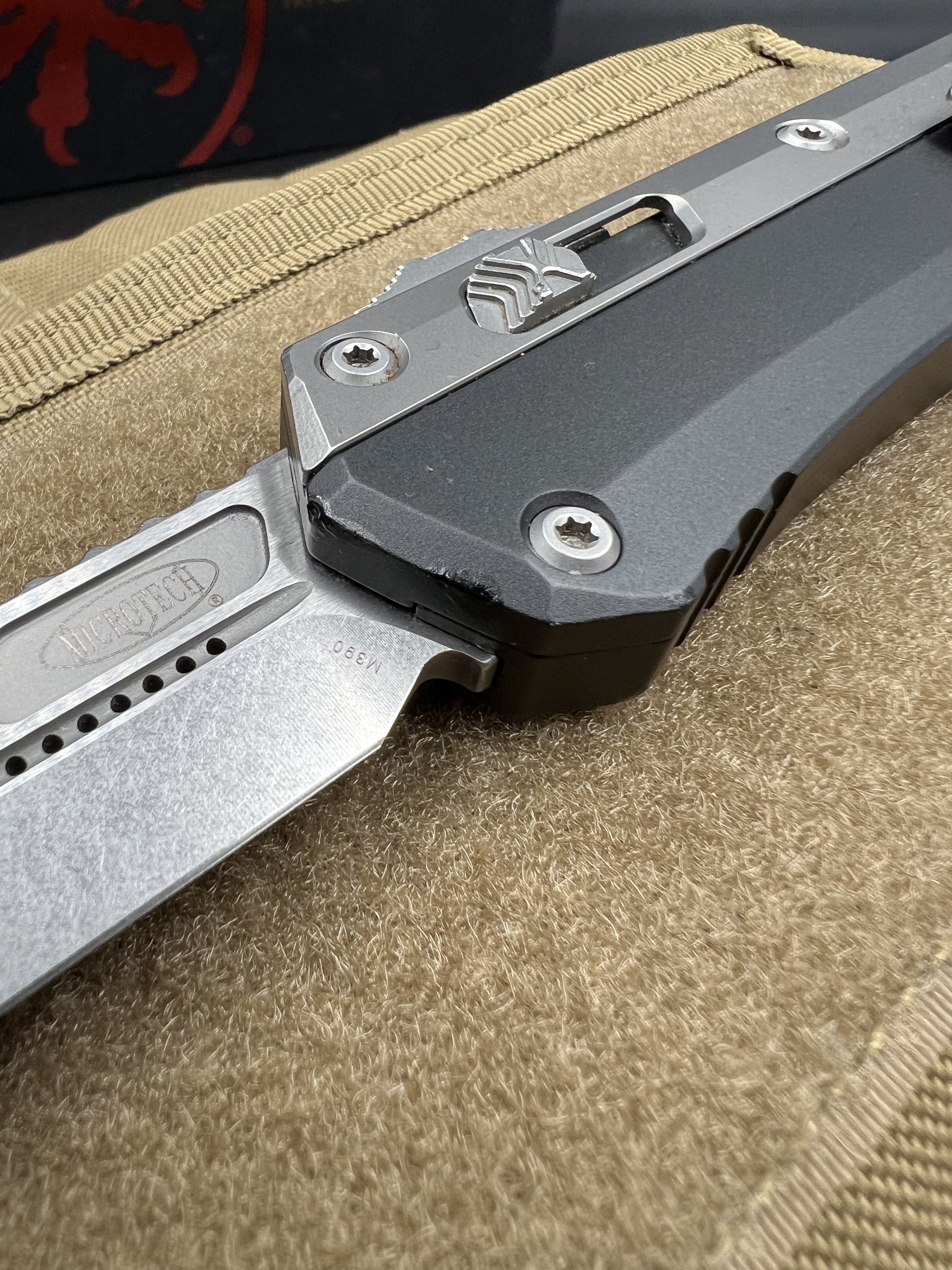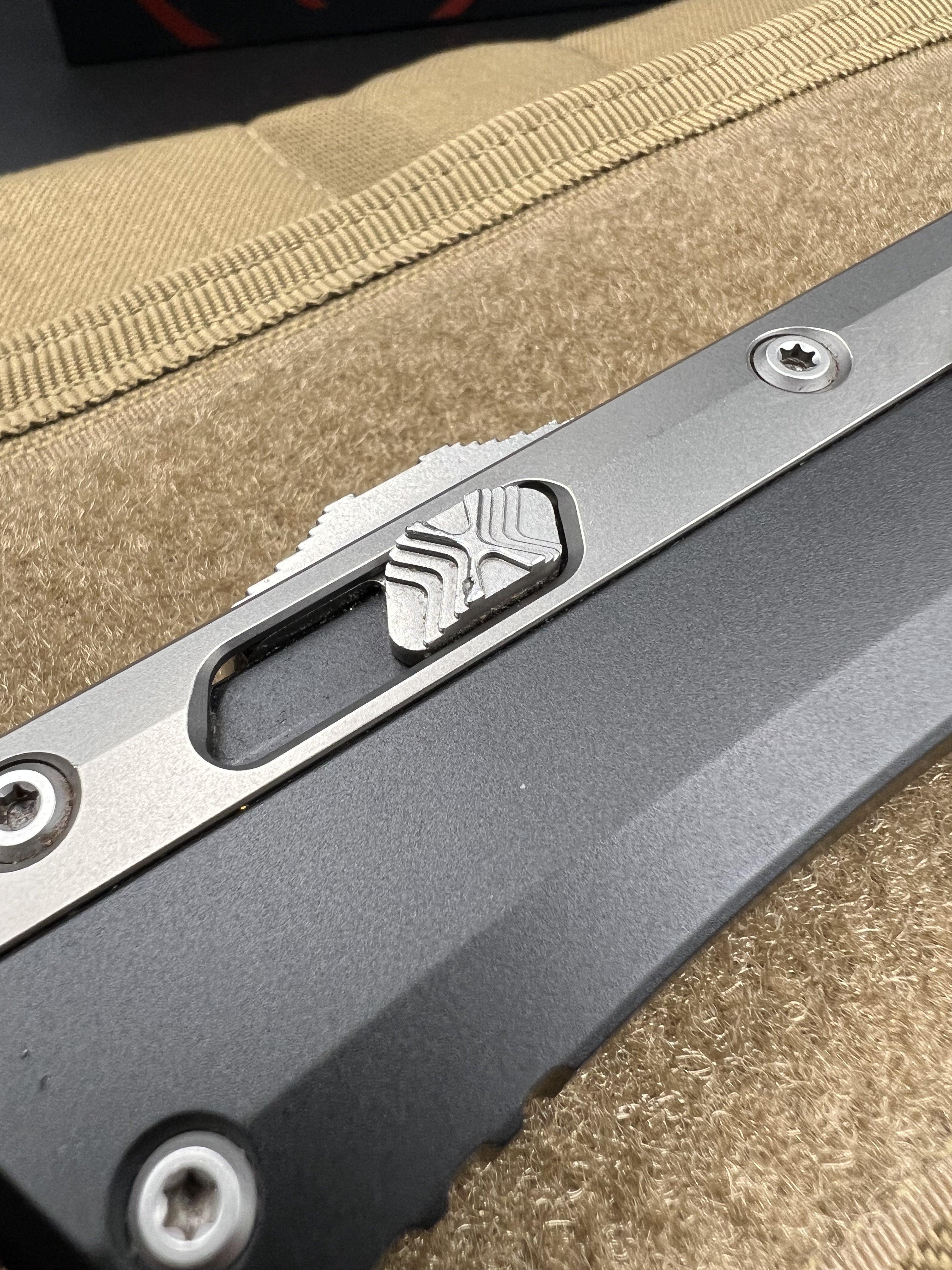 Ціна - 22 590 грн Ніж був у вжитку, є сліду зносу, має вмятини на кутах які зафарбовані чорною якісною фарбою, зламаний кінчик леза, дивіться фото. Ніж не точився і не розбирався , правився один раз, заточки не потребує, якщо не рахувати зламаний кінчик. Механіка дуже мʼяка. Коробка, документи в комплекті з ножем. Характеристики: Загальна довжина - 228 мм Довжина клинка - 95 мм Форма клинка - Bayonet Фініш клинка - Stonewash Сталь клинка - Böhler M390 Довжина рукояті - 133 мм Рукоятка - Алюміній / Титан Замок - X-Button Lock Вага - 148 г Країна виробництва - США