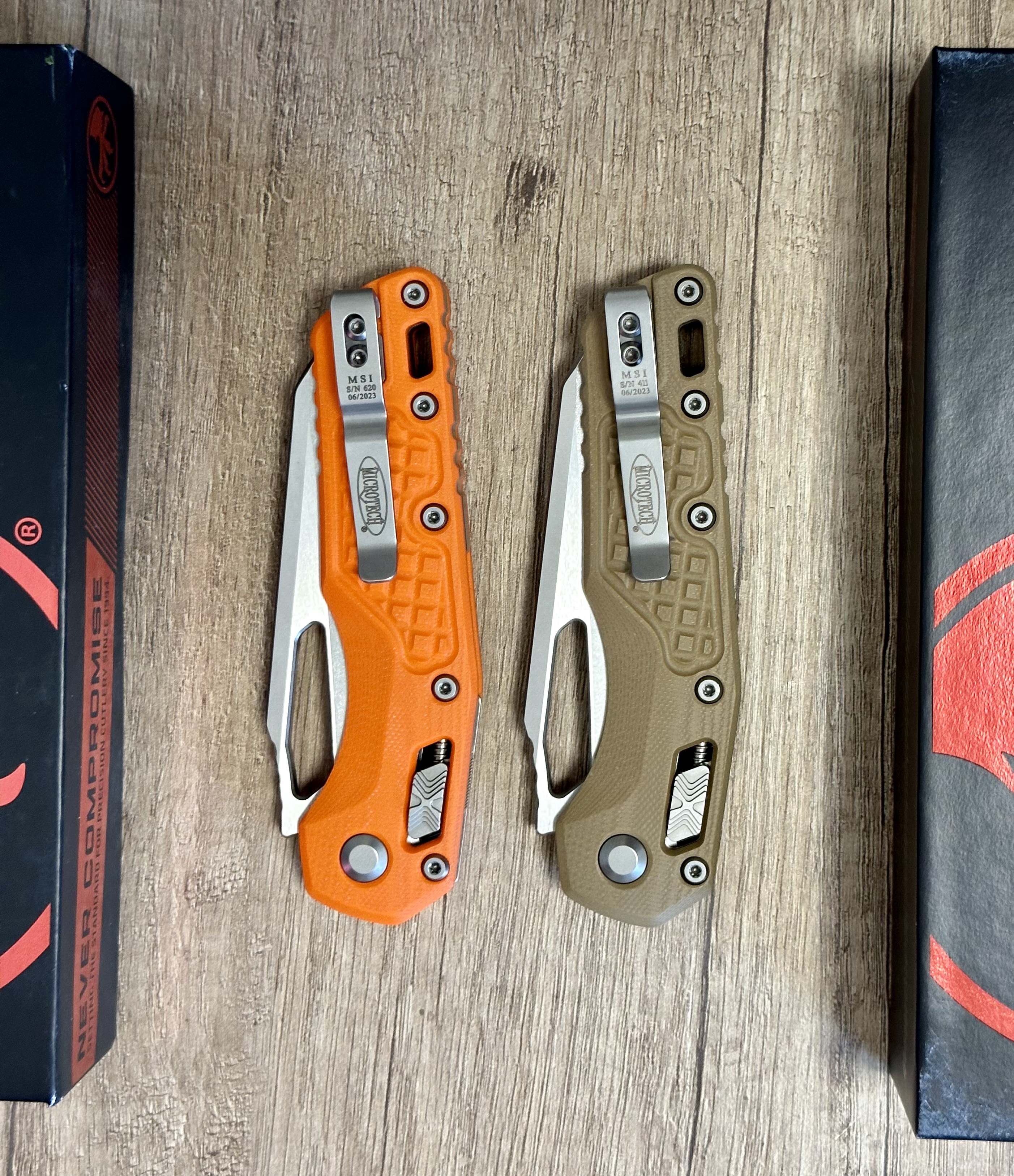 В наличии Microtech MSI Tan Frag Ram-Lock, сталь M390MK, рукоять G10, на рукоятки есть несколько мини царапин, теронулся об другой нож (отдельное фото в близи) . Произведен 06.2023 По всем вопросам пишите! Новая цена!: Tan - 10 999