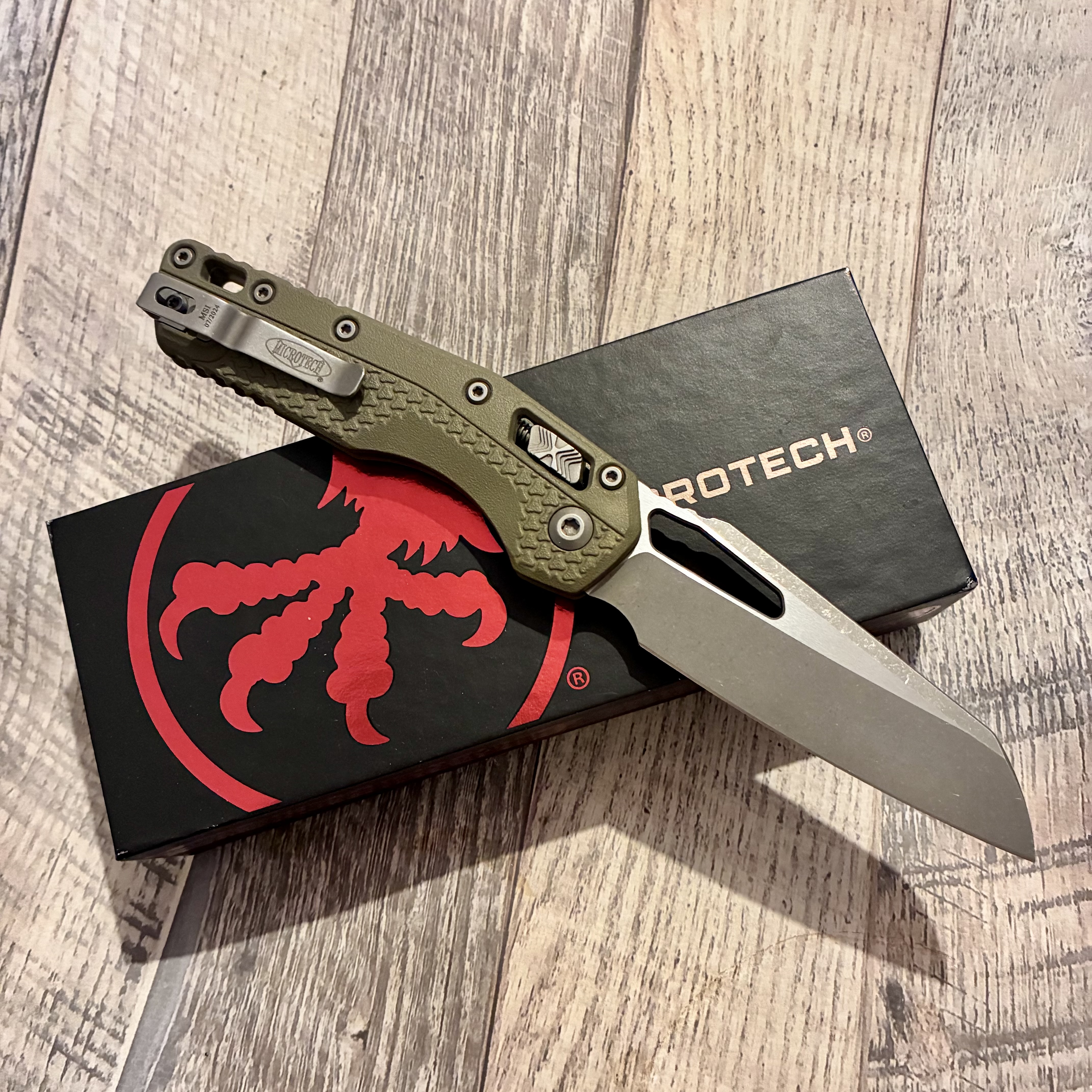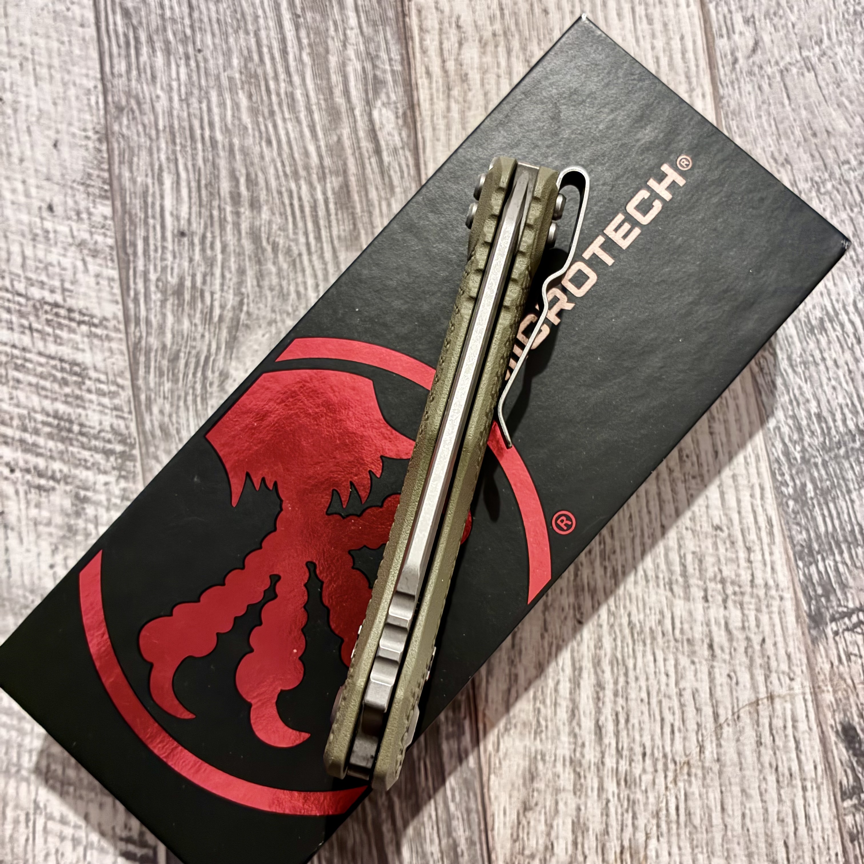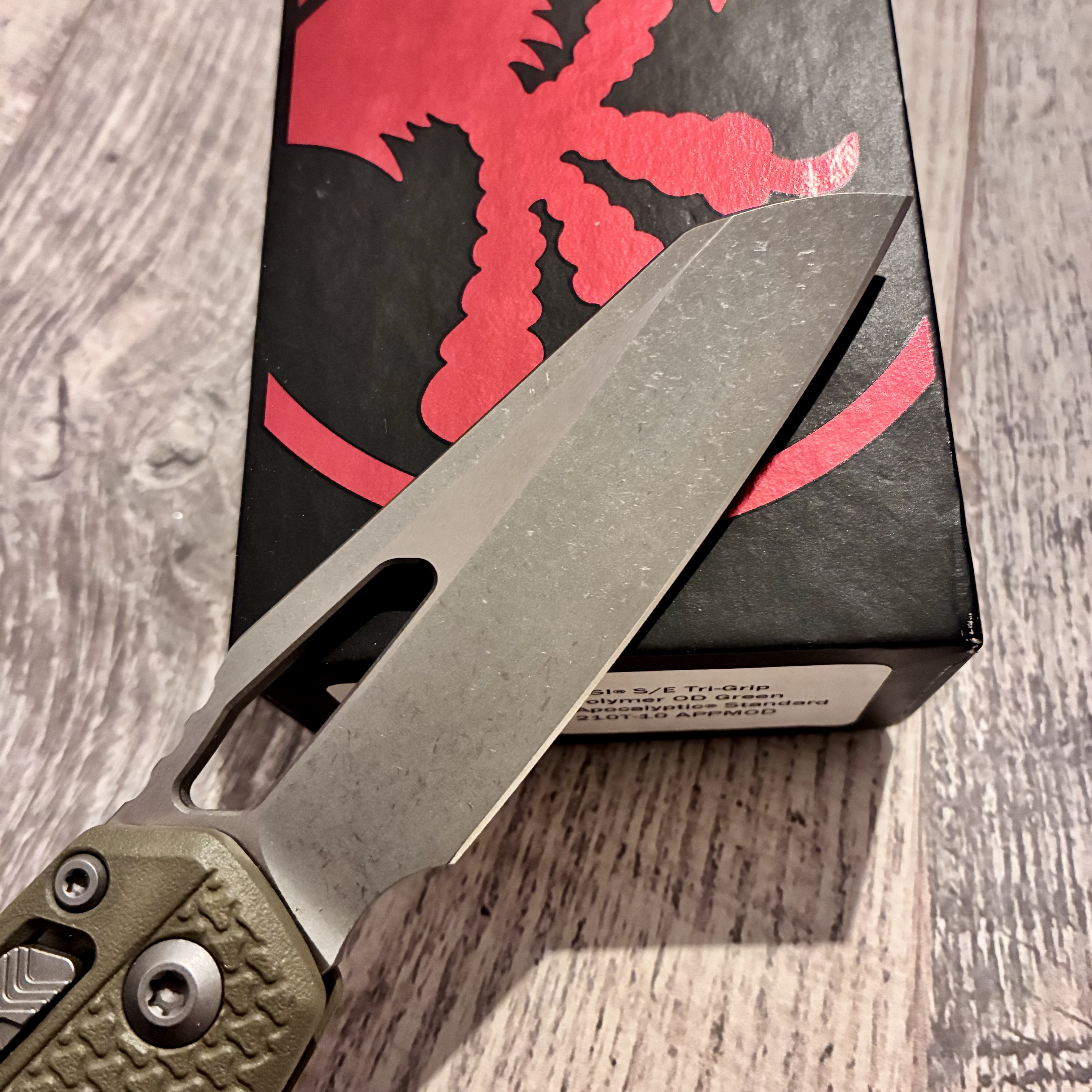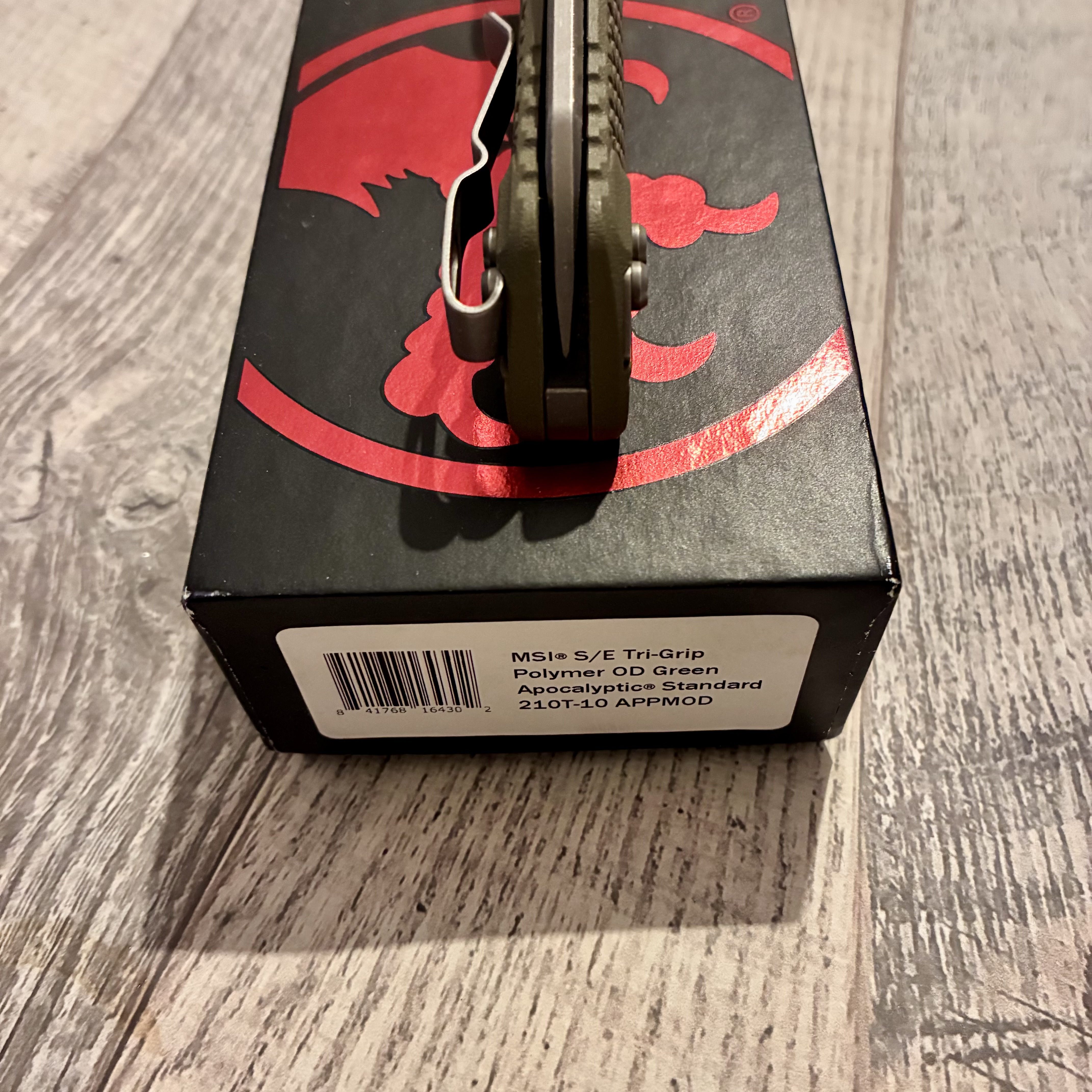 Microtech MSI Ram-Lok S/E Tri-Grip Polymer OD Green Apocalyptic 210T-10APPMOD Довжина клинка ~ 10 см Вага ~ 130 г Не новий, але без нюансів. Немає тільки стікеру. Ціна 7000 грн.