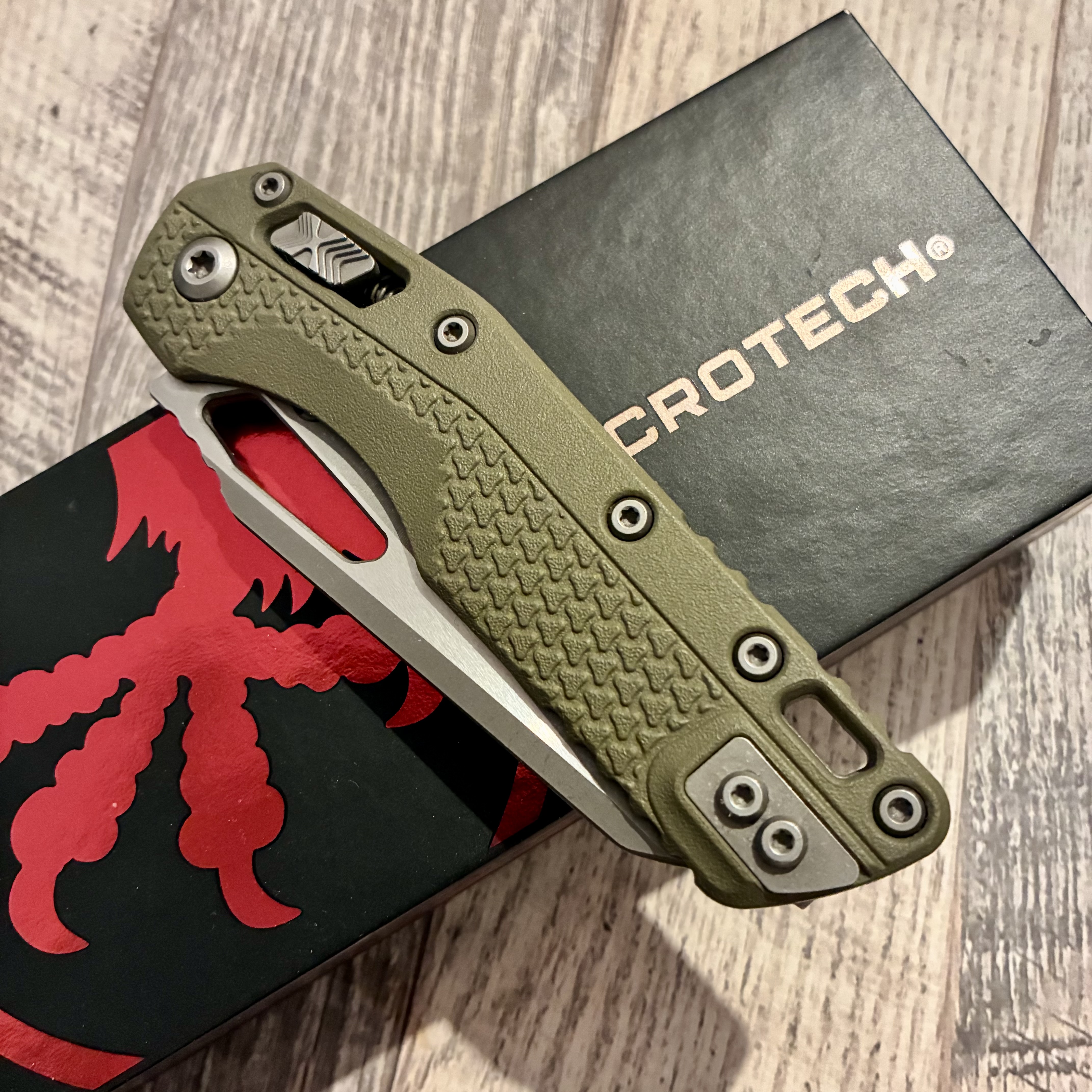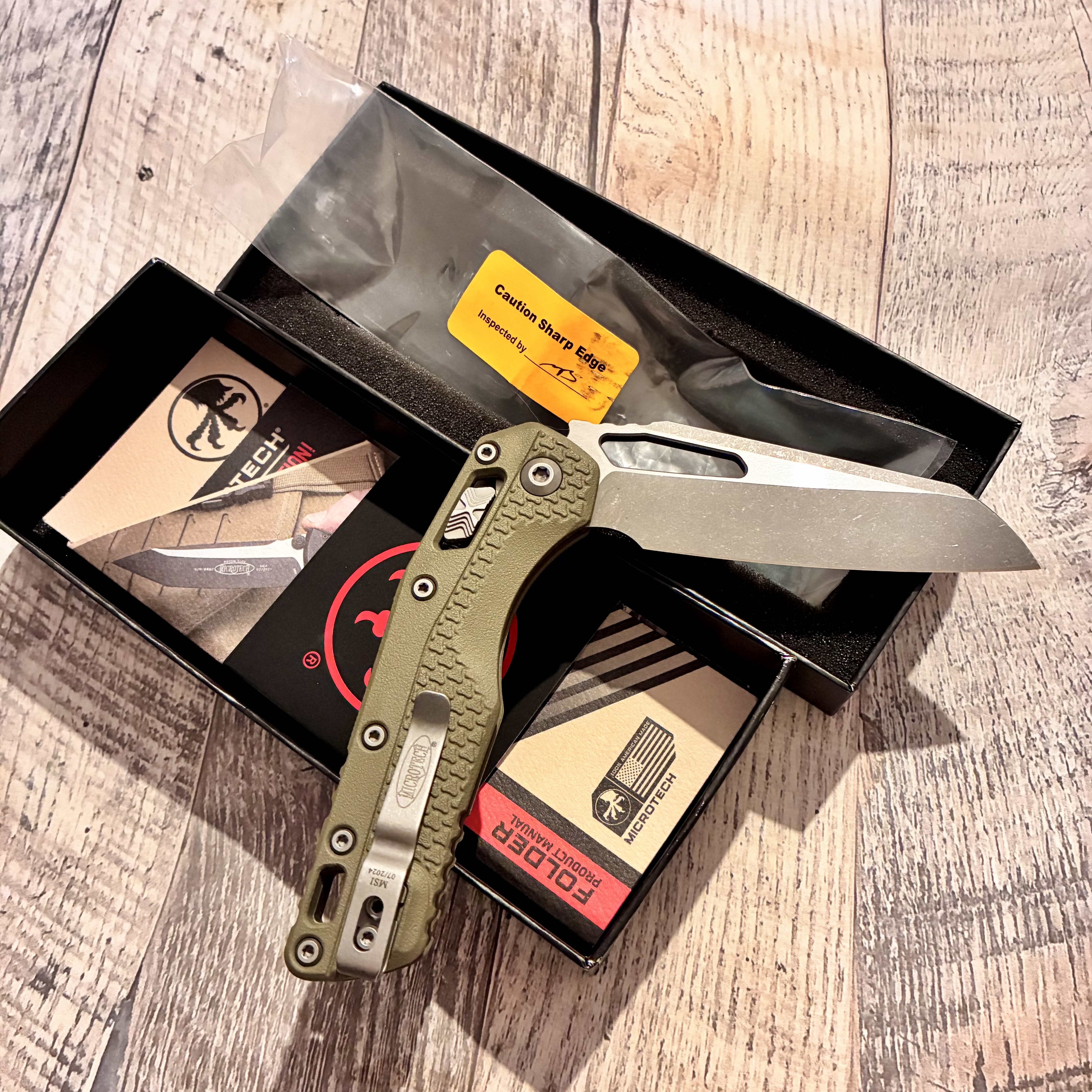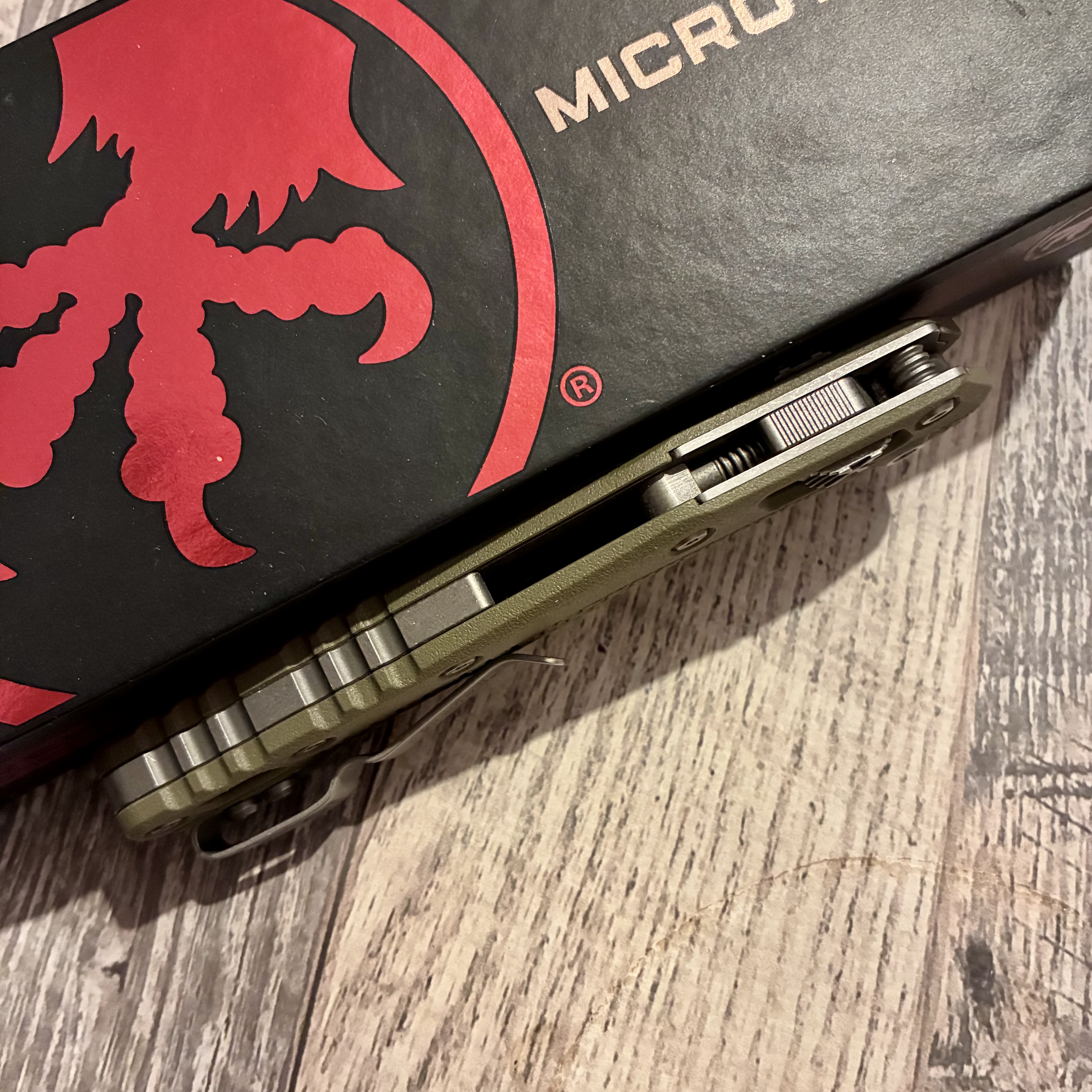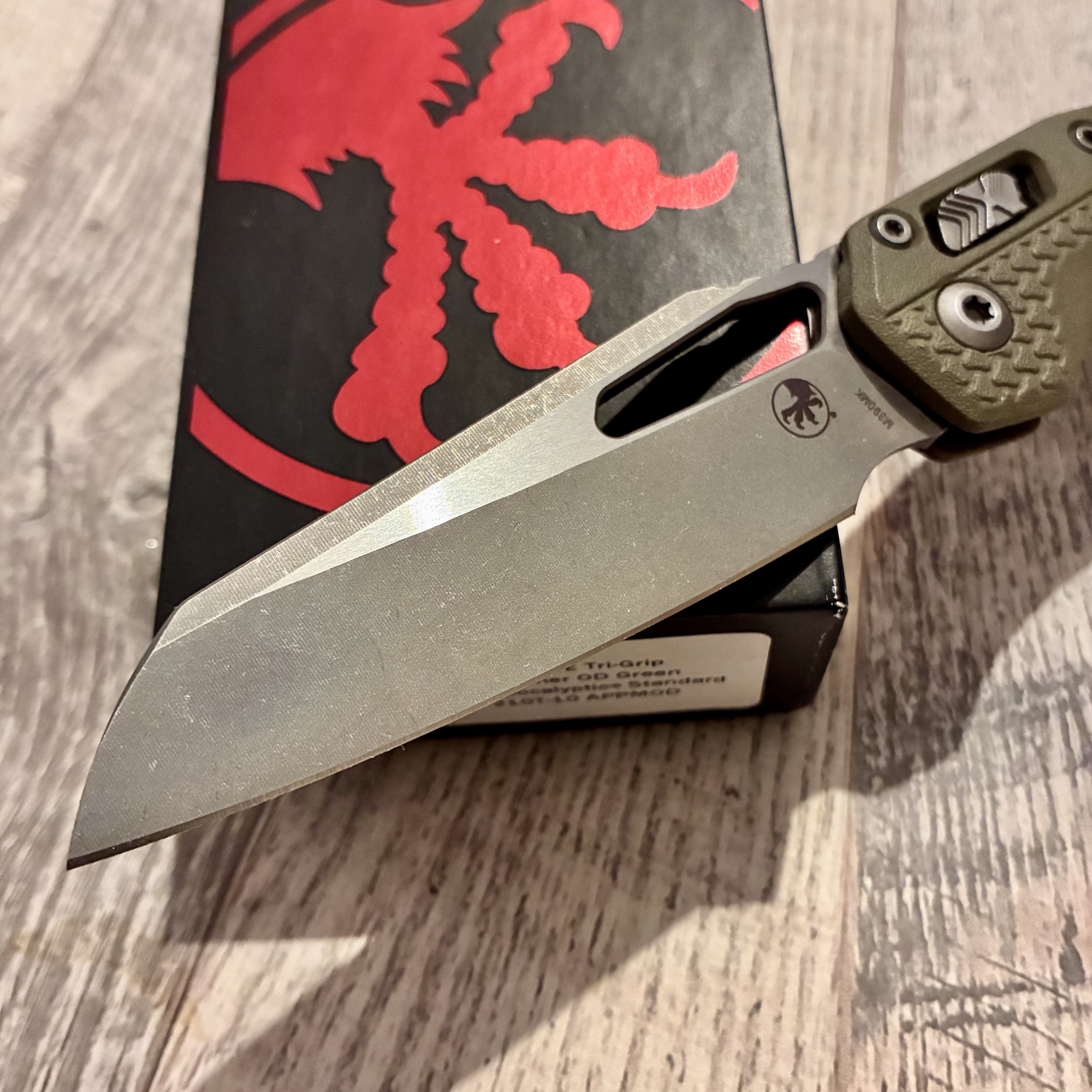 Microtech MSI Ram-Lok S/E Tri-Grip Polymer OD Green Apocalyptic 210T-10APPMOD Довжина клинка ~ 10 см Вага ~ 130 г Не новий, але без нюансів. Немає тільки стікеру. Ціна 7000 грн.