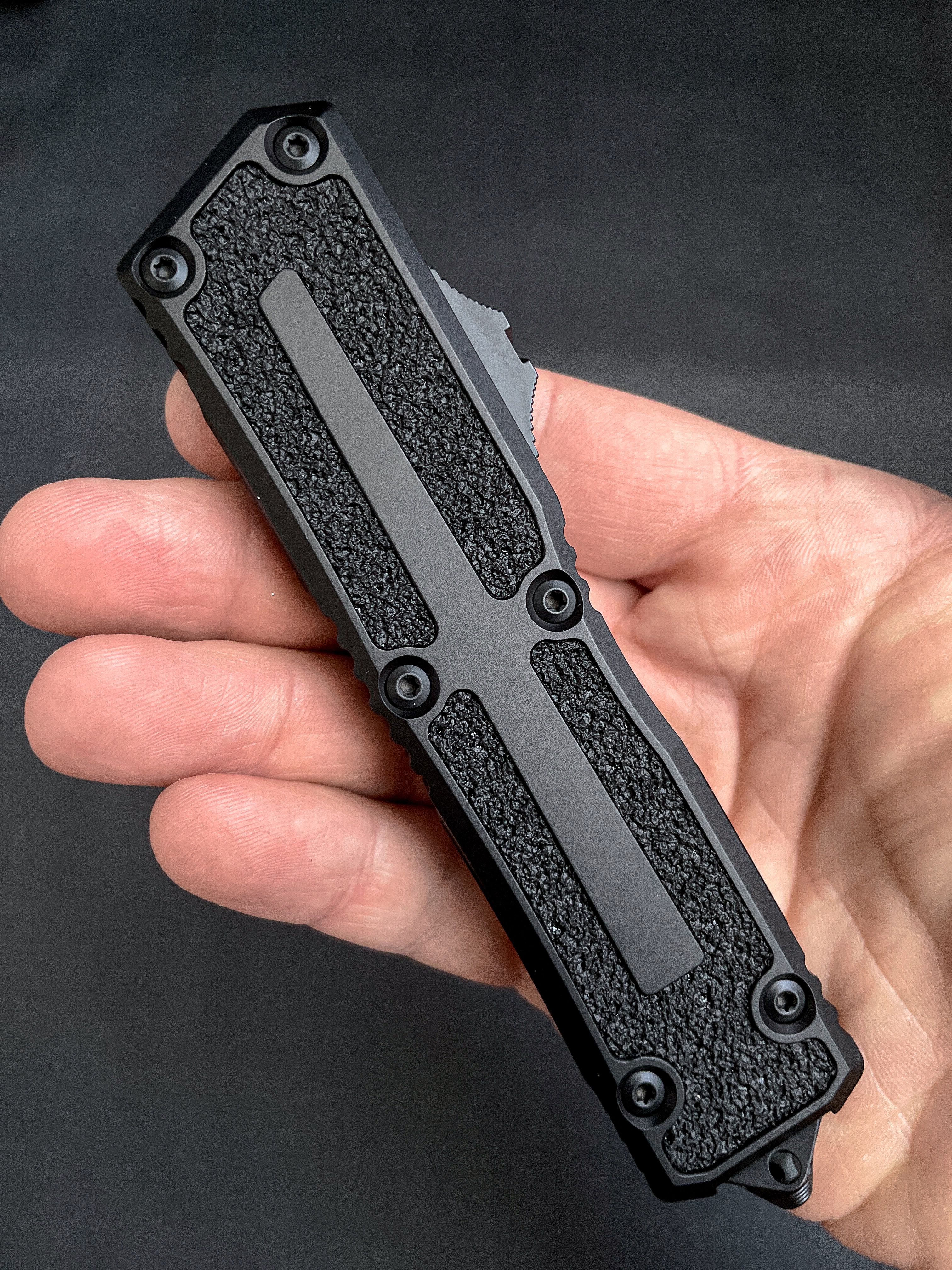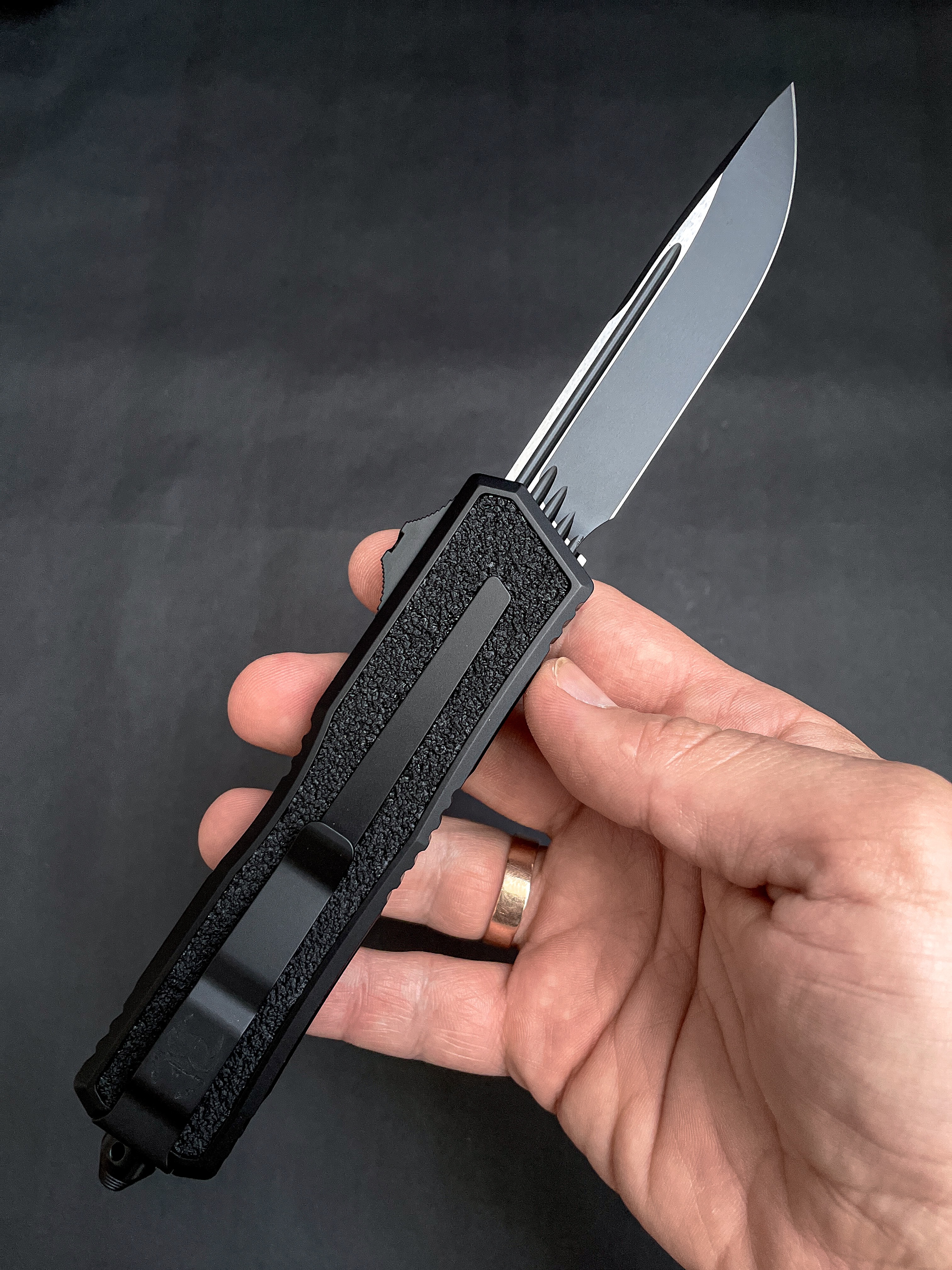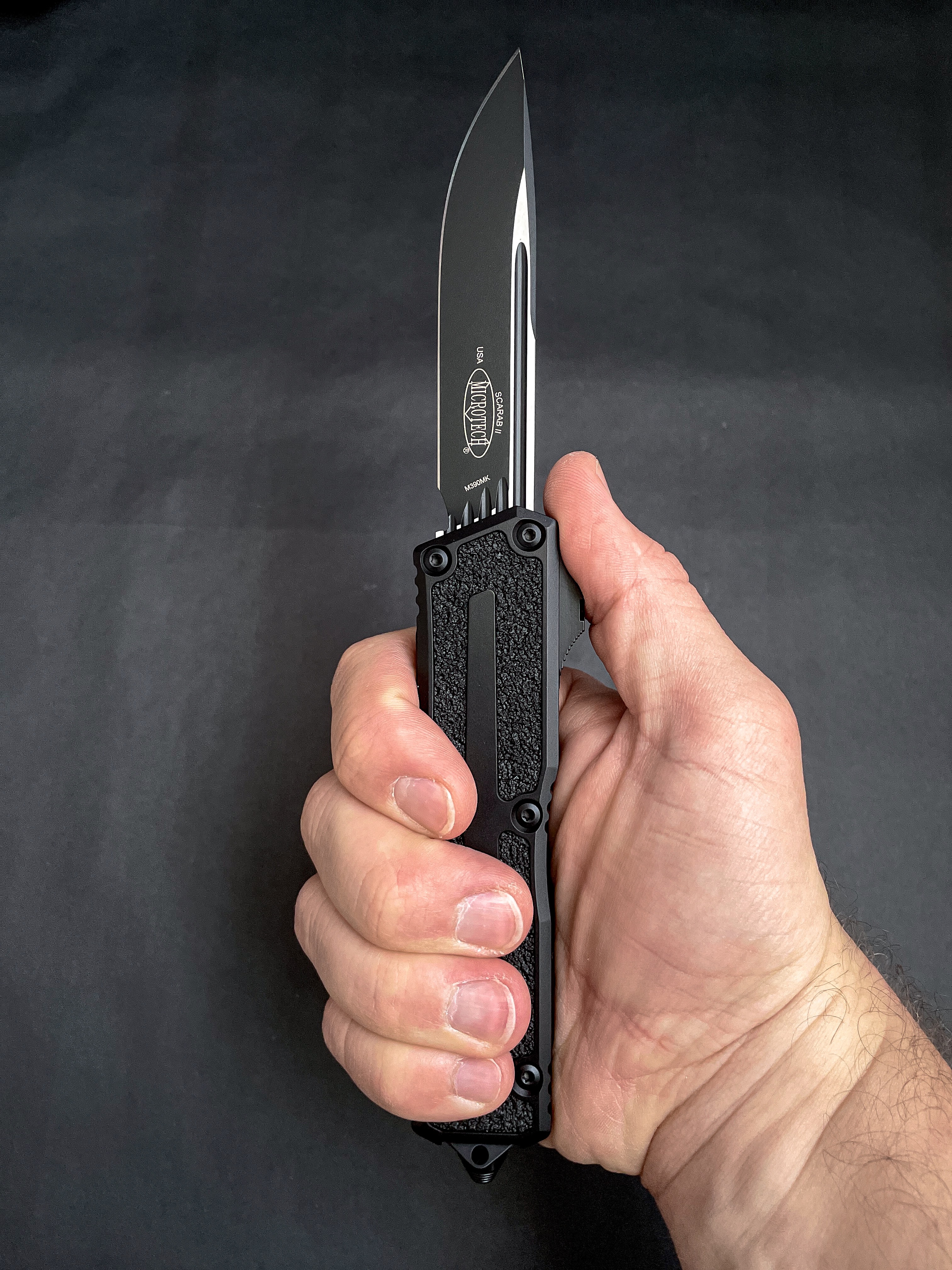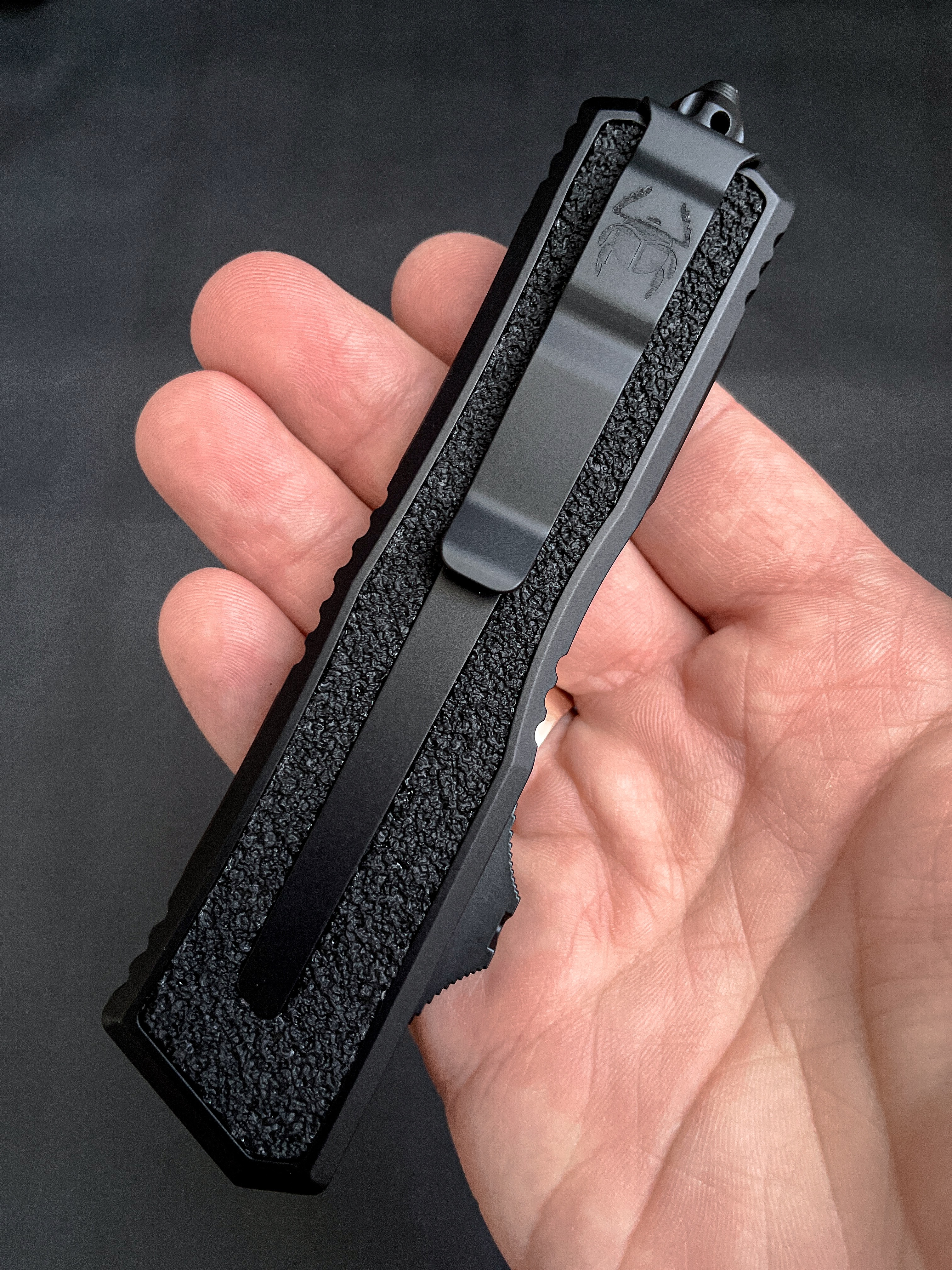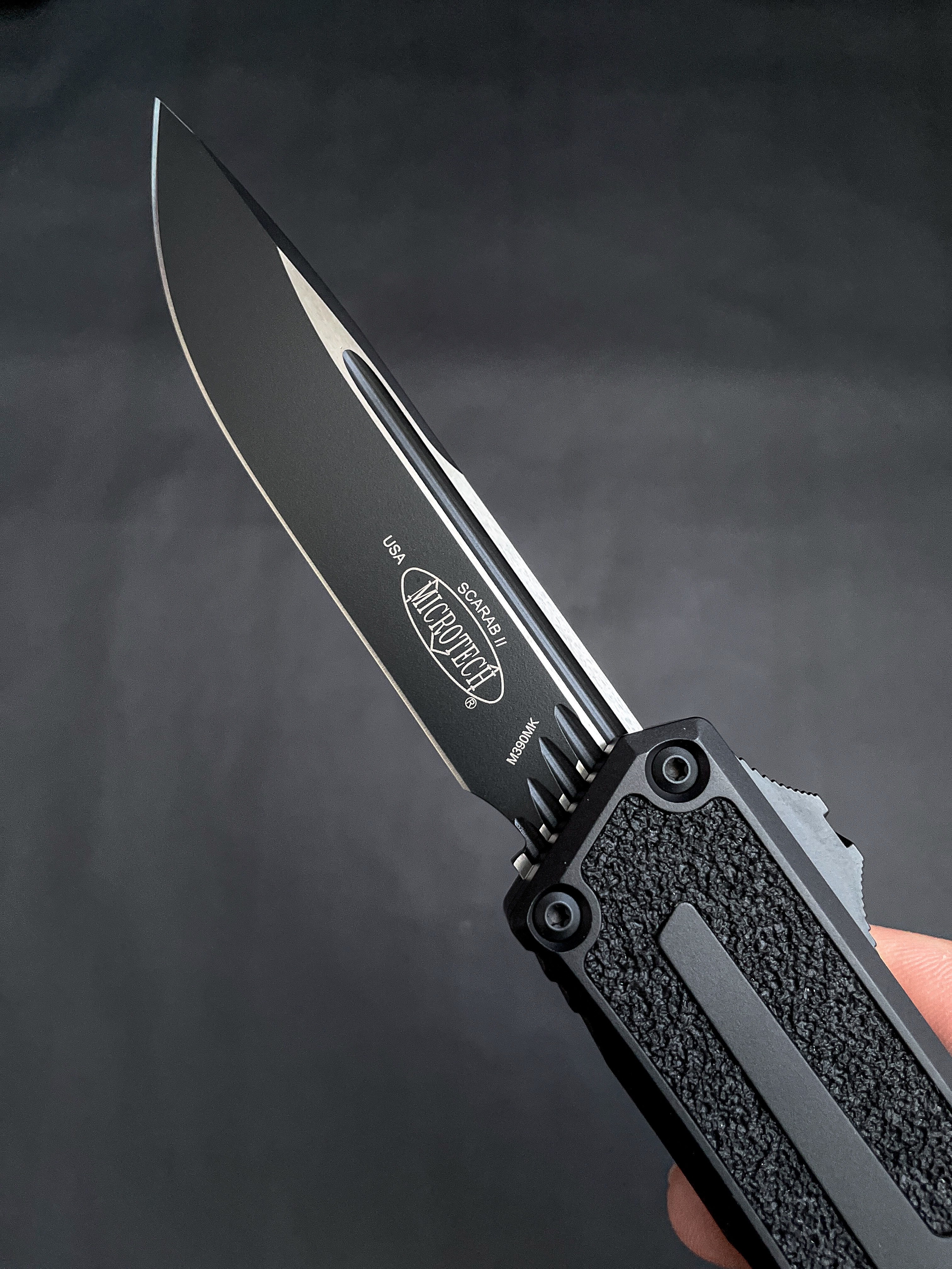 Пропоную вашій увазі, якщо не хедлайнера, то точно special guest на вечірці оновлень модельного ряду Microtech - Scarab. Найбільш вагомий і в прямому і в переносному значенні OTF серед пропозиції Марфіоне. На відміну від інших моделей Scarab не радикально змінив свій дизайн, зате отримав всі технічні оновлення - нову 2-х пружинну систему відкриття, оновлену сталь та покращену ергономіку тригера.