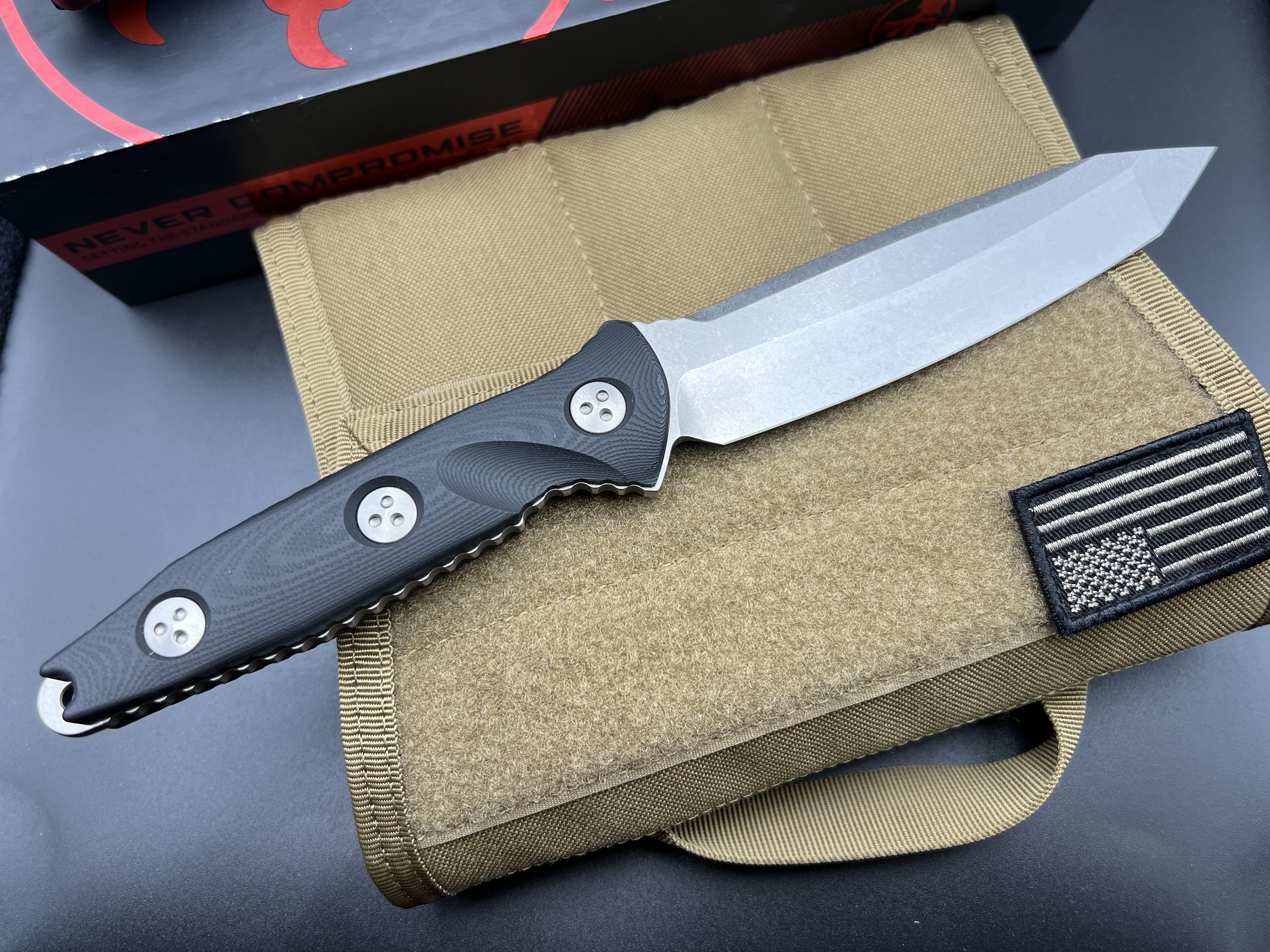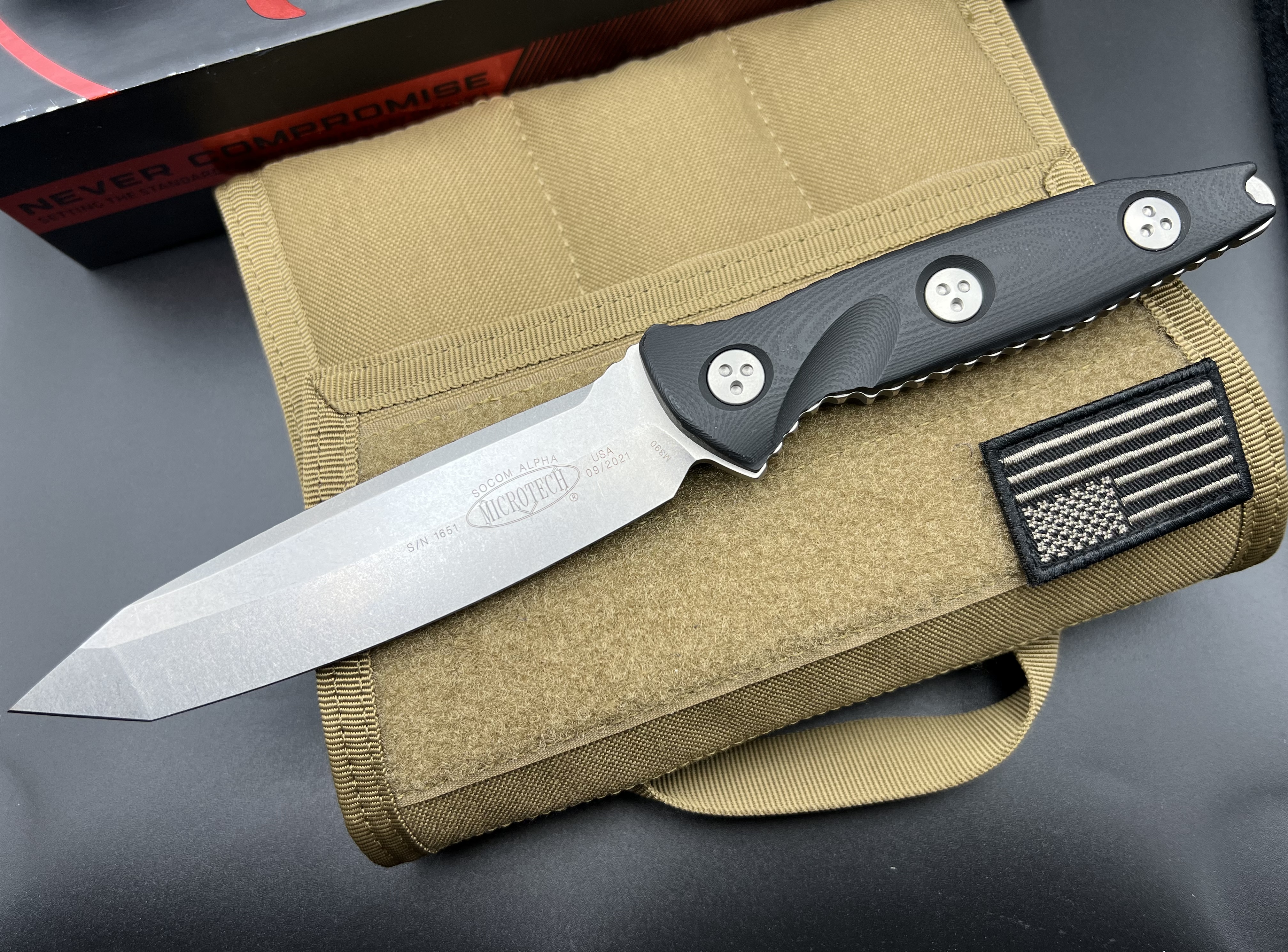 Приветствую сообщество. Предлагаю вашему вниманию новый нож Microtech Socom Alpha. Цена - Продан Оплата на карту Пумб Отправка Новой почтой с полной страховкой. Фиксированный нож Microtech Socom Alpha Tanto Fixed, Stonewash Elmax Blade, Black G-10 Handles, Carbon Pattern Kydex Sheath Дизайн: Anthony Marfione Сталь: М390 Твёрдость стали: HRC 60-61 Длина клинка: 12.7 см Общая длина: 25.4 см Максимальная толщина клинка: 5.1 мм Вес: 240 грамм Покрытие клинка: Apocalyptic Stonewash Режущая кромка: Plain Тип профиля клинка: Tanto Рукоять: Стеклотекстолит G-10 Чехол: Kydex Классификация изделия: Tactical knife Страна изготовитель: С.Ш.А.