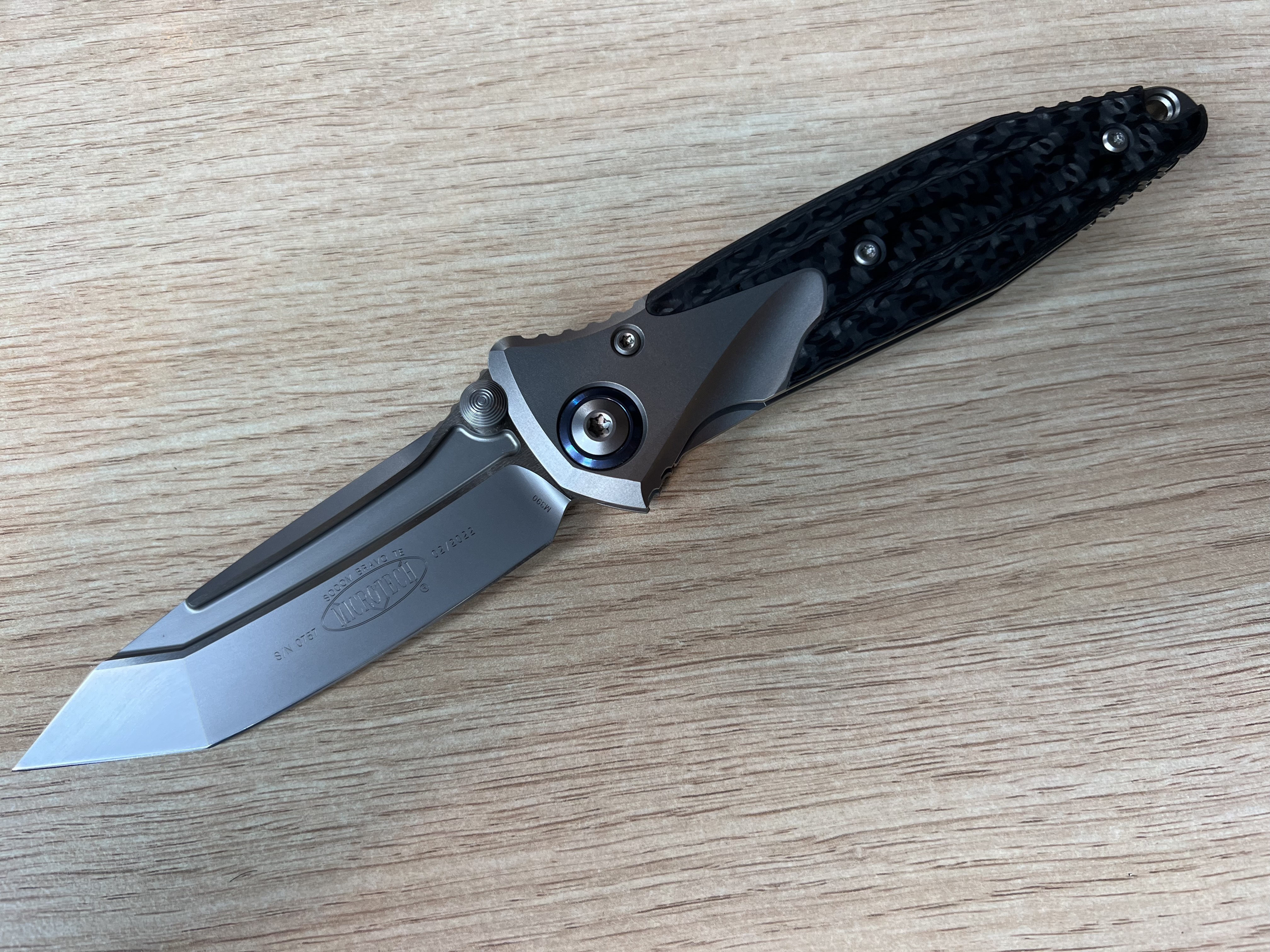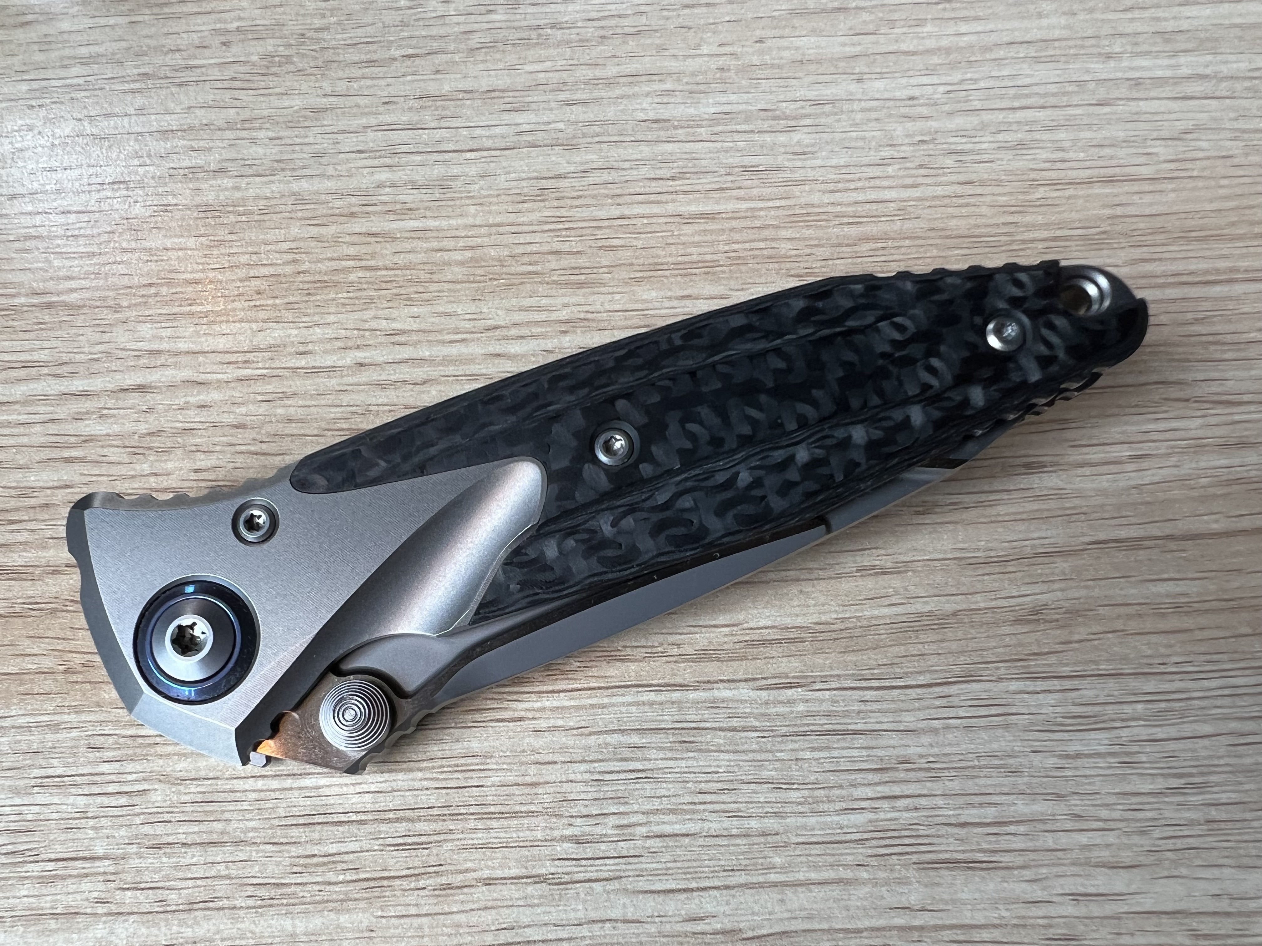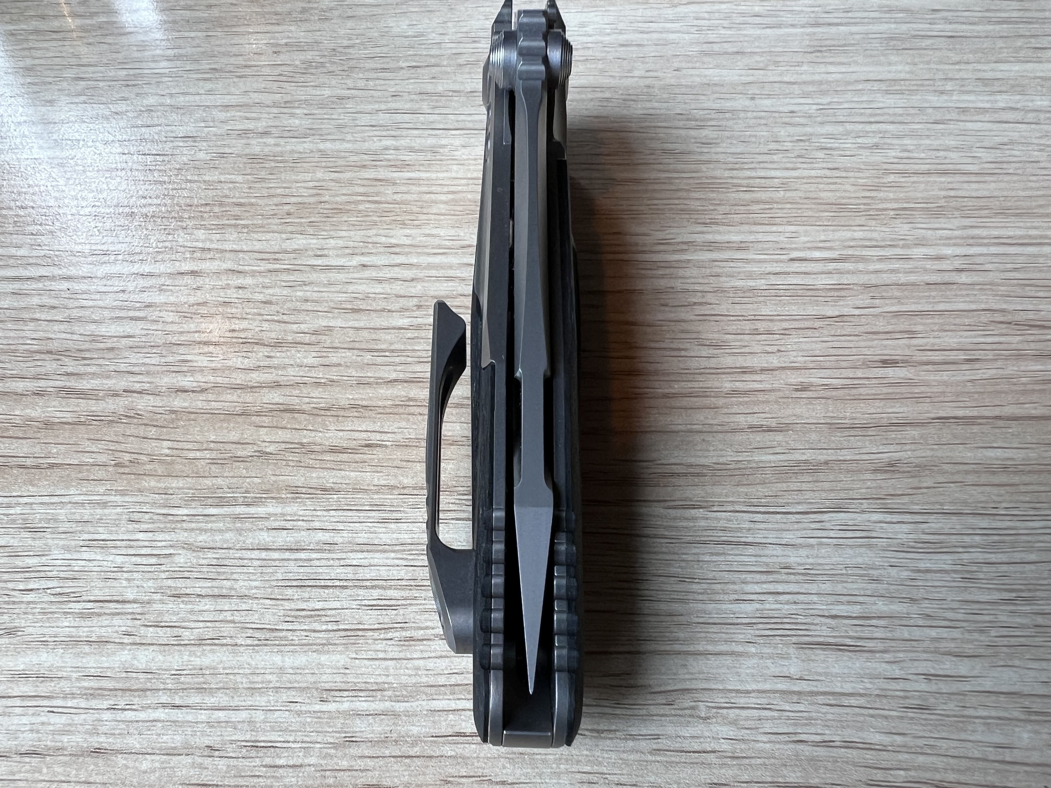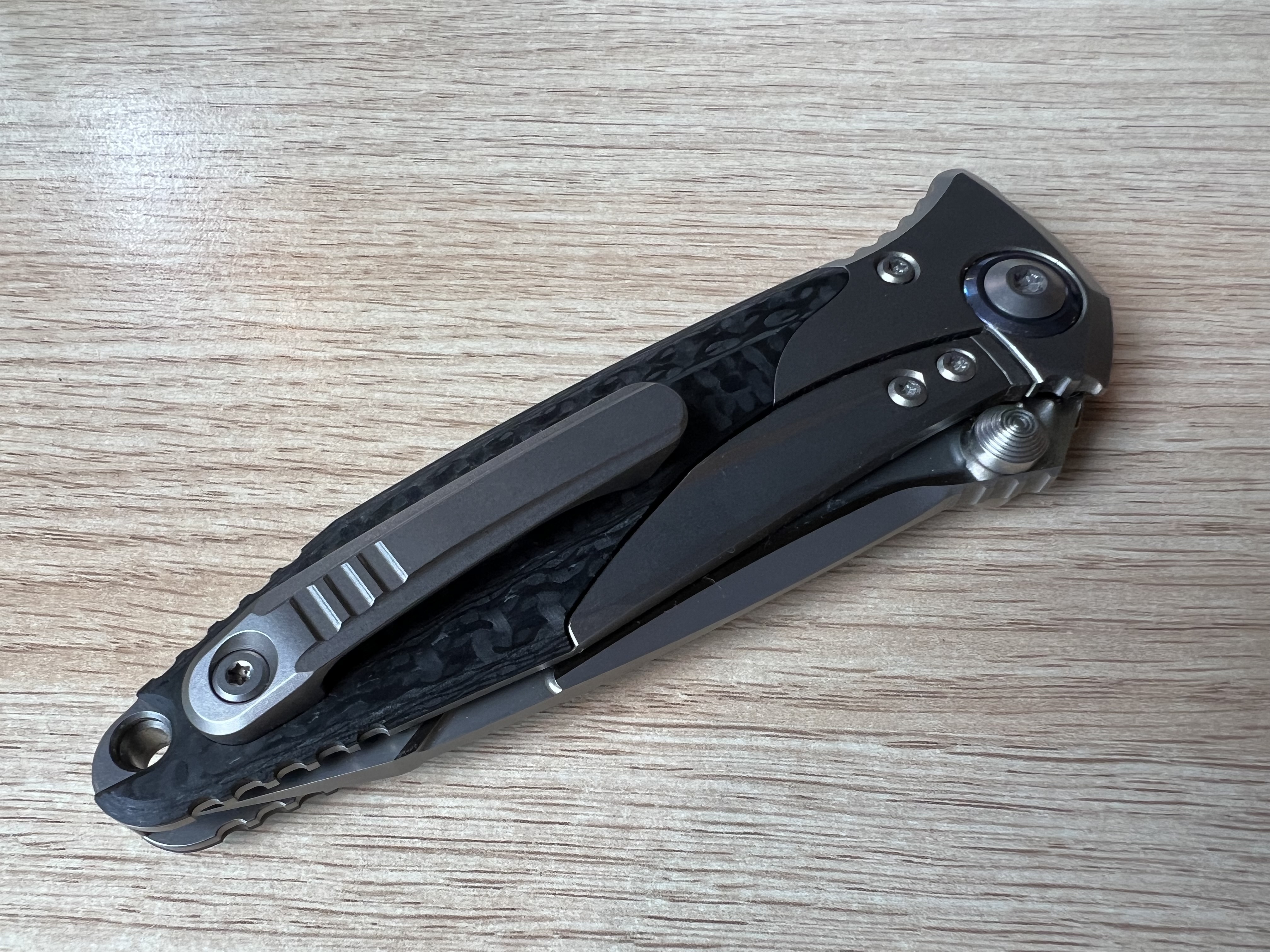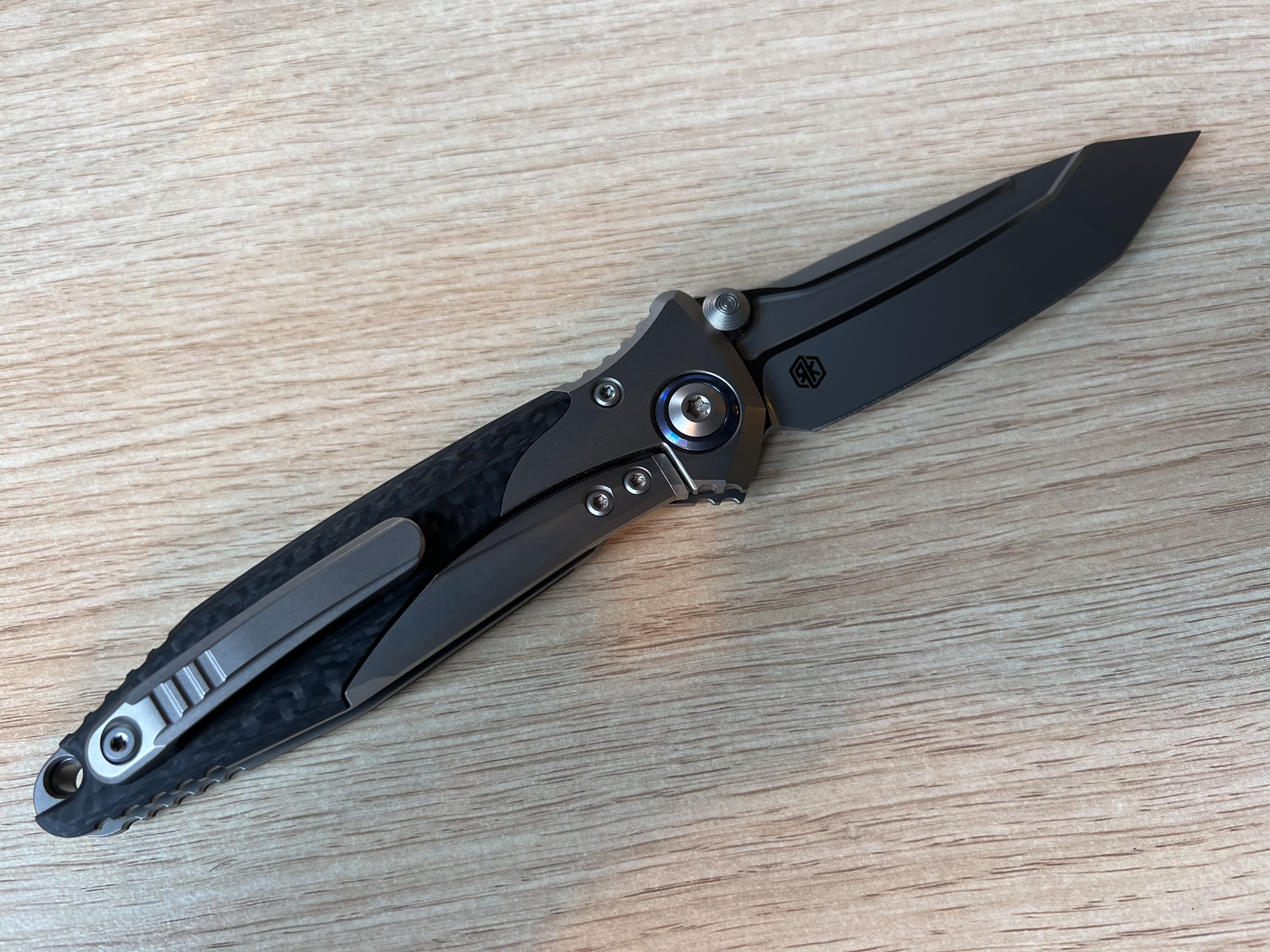 Состояние - не перетачивался, люфт отсутствует, без видимых нюансов. Бывает туго открывается Цена - 14000грн Характеристики: Общая длина: 228 мм Длина клинка: 102 мм Толщина клинка: 4 мм Сталь клинка: М390 Осевой: Керамические подшипники, бронзовые окантовка Материал рукояти: Титан / Карбон Замок: Sub-Frame Lock Вес: 160 г