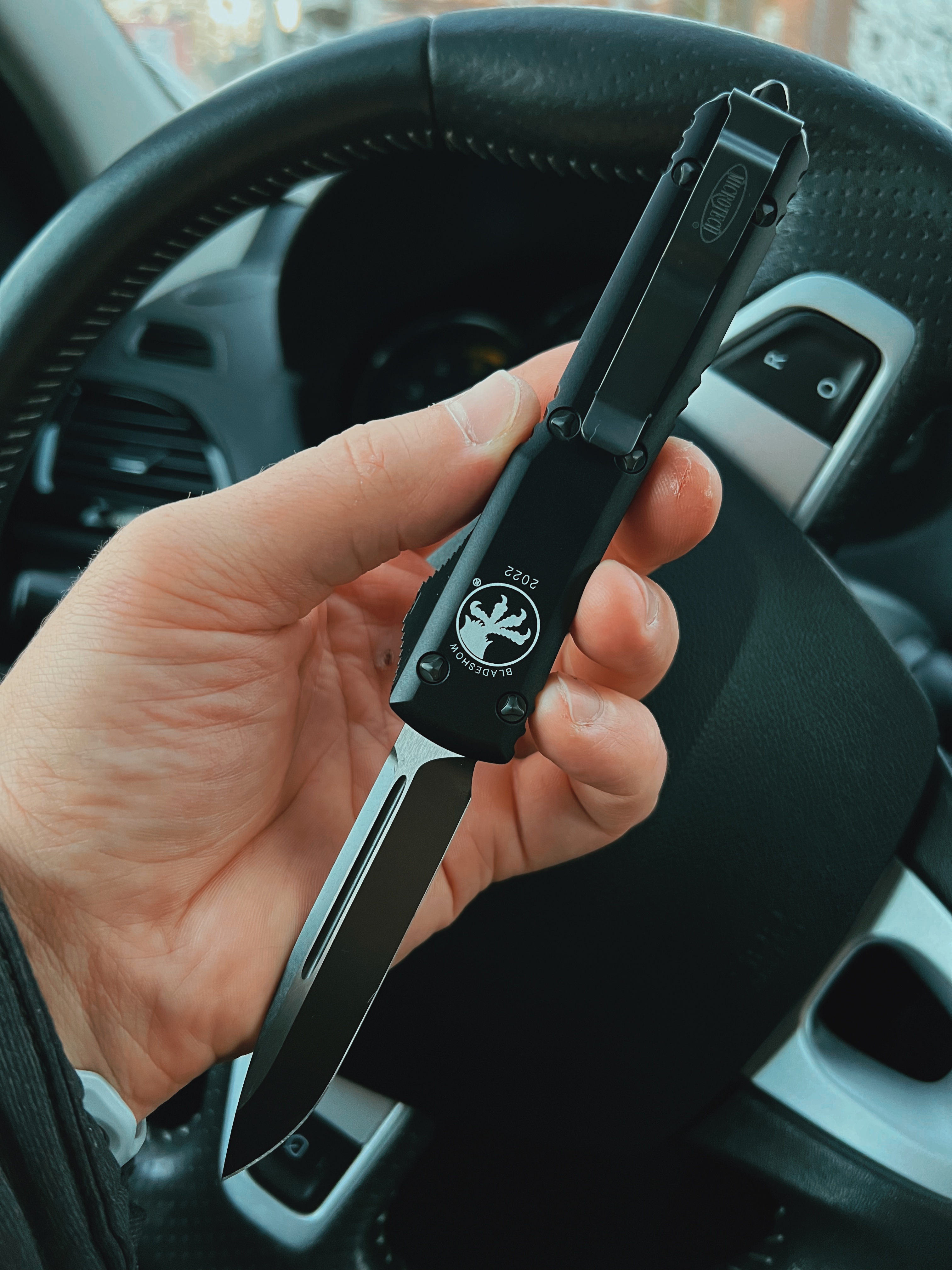Ніж Microtech Ultratech Black S/E Модель: Blade Show 2022 (Ексклюзивний виставковий лімітований З покриттям DLC на клинку та кліпсі замість серійного Cerakote) Ціна - 12 000 грн Стан - носився але не використовувався, ніж має заводську гостру заточку, також була переставлена кліпса на ліву сторону і під нею є потертості. На руківʼї і лезі немає подряпин або сколів 100% Оригінал Колір рукояті: Чорний Лезо:Single Edge Колір клинка: DLC Коробка, папери, ніж Характеристики: Довжина клинка: 86мм Товщина клинка: 3.3мм Повна довжина: 212мм Сталь - M390