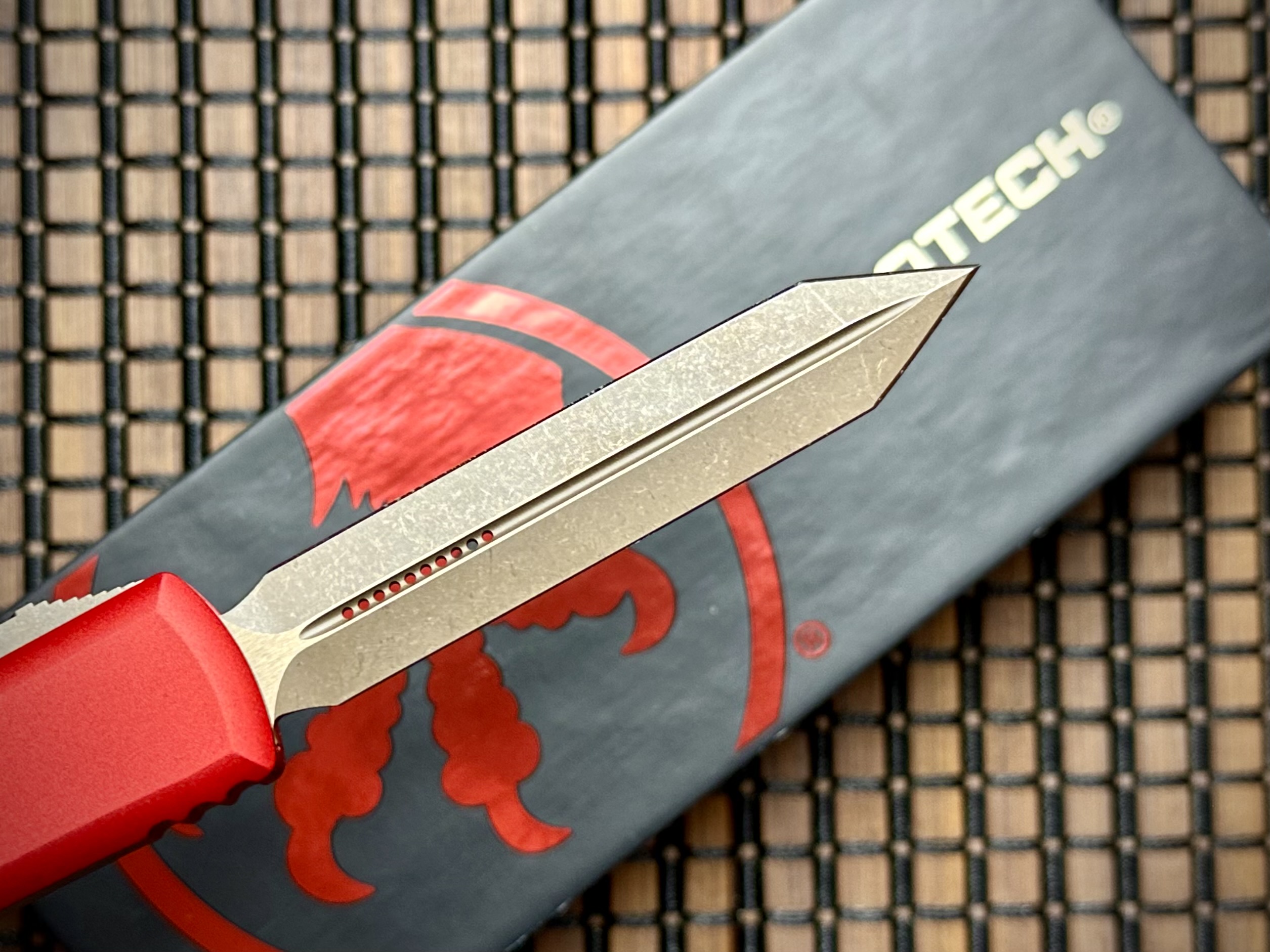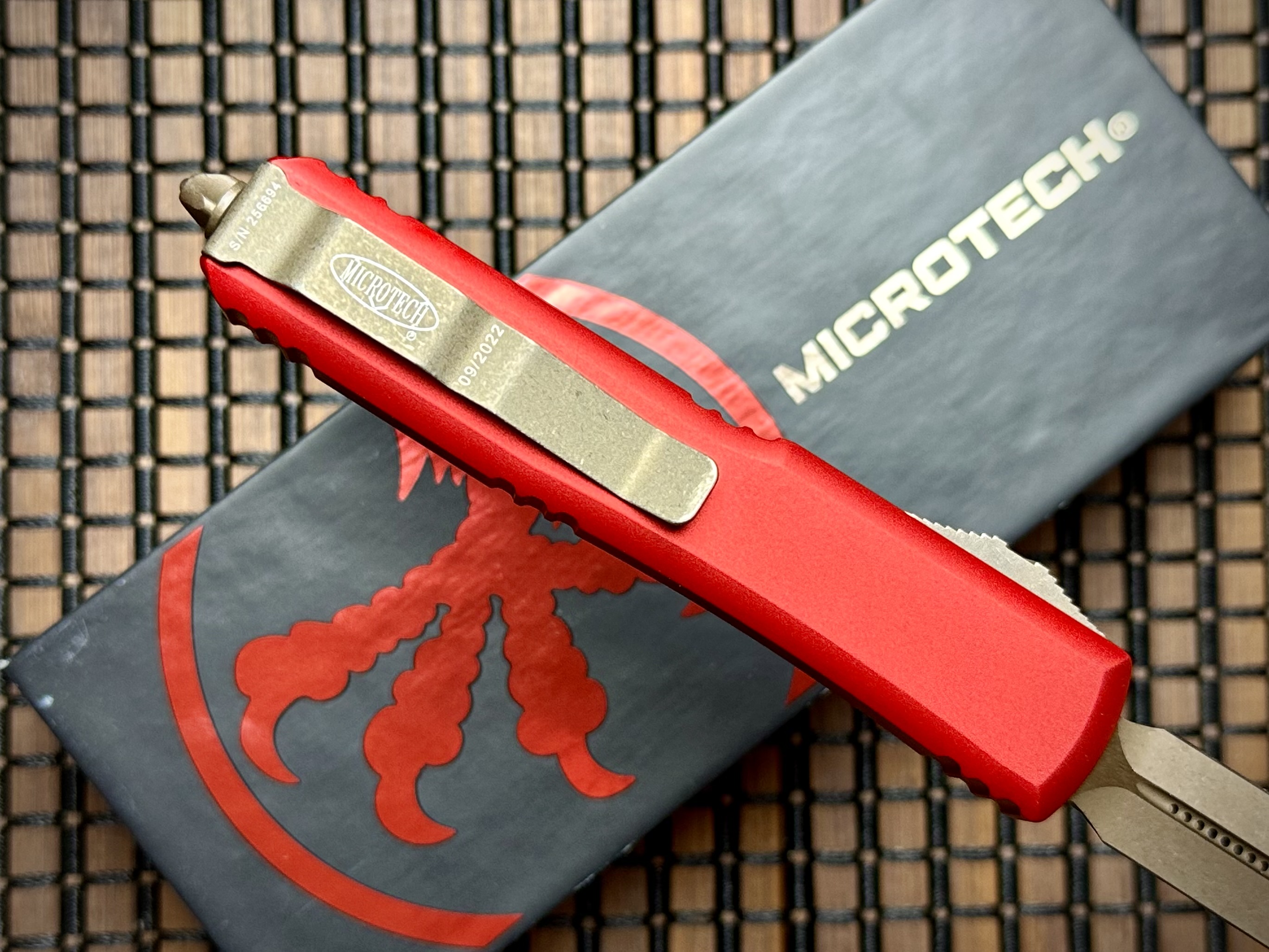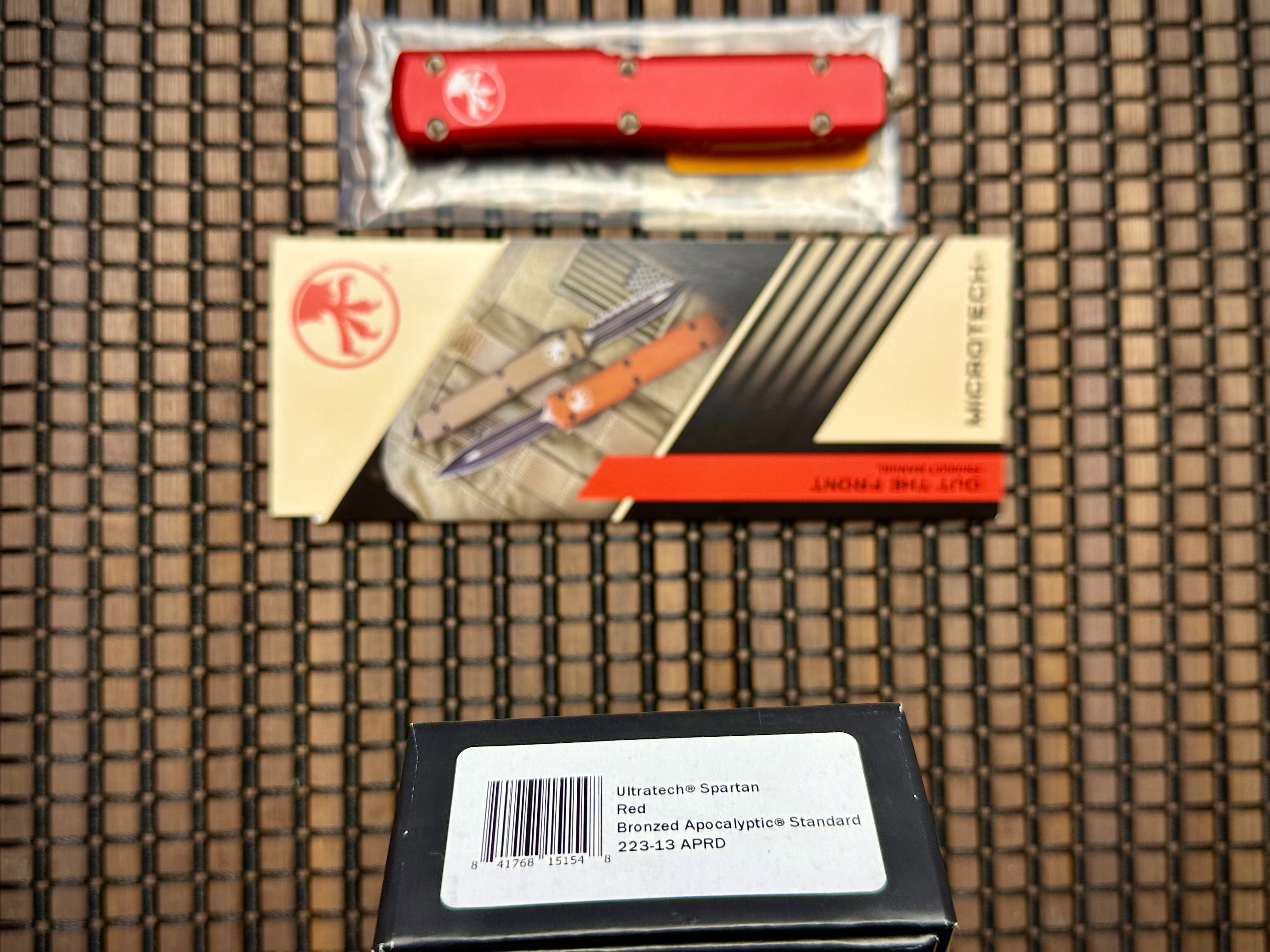 Приветствую всех ножеманов! Предлагаю к продаже новый нож Microtech Ultratech Spartan Red Bronzed Apocalyptic M390 Компания Microtech многие годы славится непревзойденным изготовлением своих складных ножей фронтального действия. Разнообразие моделей, их высококлассная сборка и подгонка всех деталей, пристальное внимание к мелочам и, конечно же, харизма удерживают изделия компании на лидирующих позициях среди популярных ножей. Четкость механизма выброса клинка, его безотказная работа и молниеносная скорость просто ошеломляют. Mictotech Ultratech – линейка выкидных автоматических ножей с усовершенствованным механизмом фронтального выброса клинка (Auto Out-the-Front). Рукоять стандартных моделей выполнена из алюминиевого сплава 6061-T6 с твердым анодированием (тип III). На торце рукояти – стеклобой с крепким шариком из закаленной стали. Для более удобного ношения предусмотрена карманная клипса с небольшим отверстием для крепления темляка. Характеристики: Длина общая: 211 мм Длина клинка: 86 мм Форма клинка: Spartan Материал клинка: M390 Обработка клинка: Bronzed Apocalyptic Материал рукояти: Red Алюминий Дополнительная информация: стеклобой, отверстие для темляка Масса: 90,7 г Страна производитель: США ЦЕНА: 450$ Нож в Киеве, продажа при личной встрече или отправка новой почтой по полной предоплате на карту. Видео ножа: https://www.instagram.com/reel/C3ShXEKsiAV/?igsh=MXg4NnVneGZyZWk3ZA==