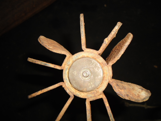 Нашел на металлоприемке вот такую часть мины. Что за веревка внутри? Я сначала подумал, что кто то сам примастерил, но вроде сделано изготовителем. веревка сложена, прошина в доль и крюк окрашен той же краской, что и сама мина.
