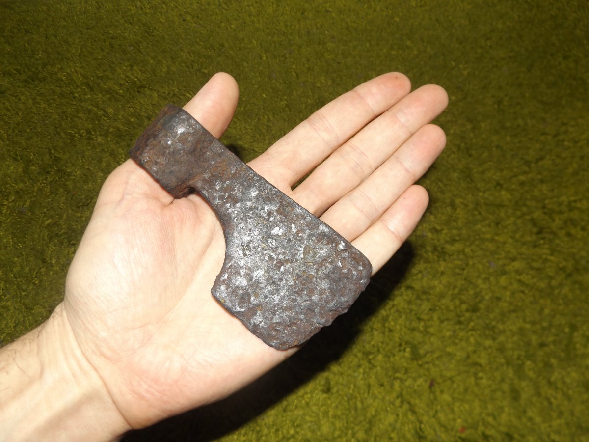 сам лично бартку не копал, достался мне такой без топорища, но орнамент не рисованный, а со вставками, явно не новодел... так что точно не скажу на горке найден или дома хранился долгие годы. я его помыл и протер, был немного окислен изначально, если полирнуть войлоком с пастой ГОИ то будет как новенький.