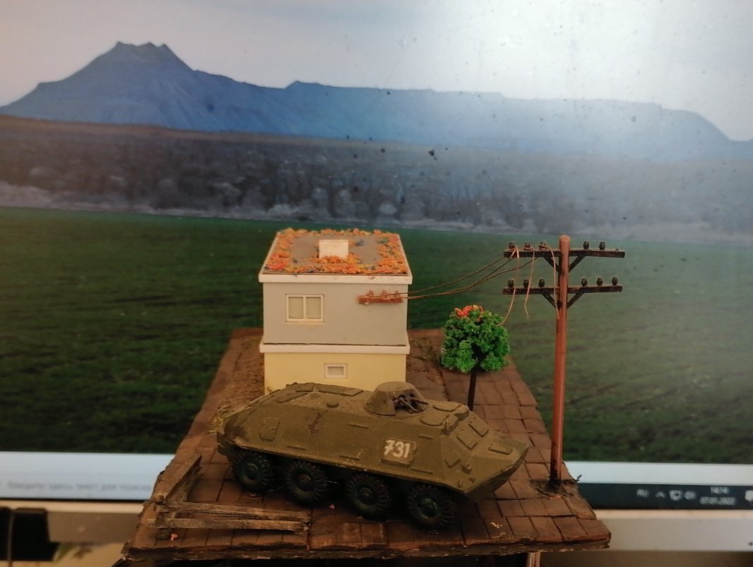Предлогаю вашему вниманию свою работу диорама в масштабе НО (1:87) Рабочее название "ВСУ НА СТРАЖЕ!" Помимо готовых моделей присутствует небольшая конверсия их. Выполнено из материалов: картон металл,пластики\пластмассы,дерево, смола, краски, керамика и пр.. 500 грн. выслушаю предложения. Приятных покупок