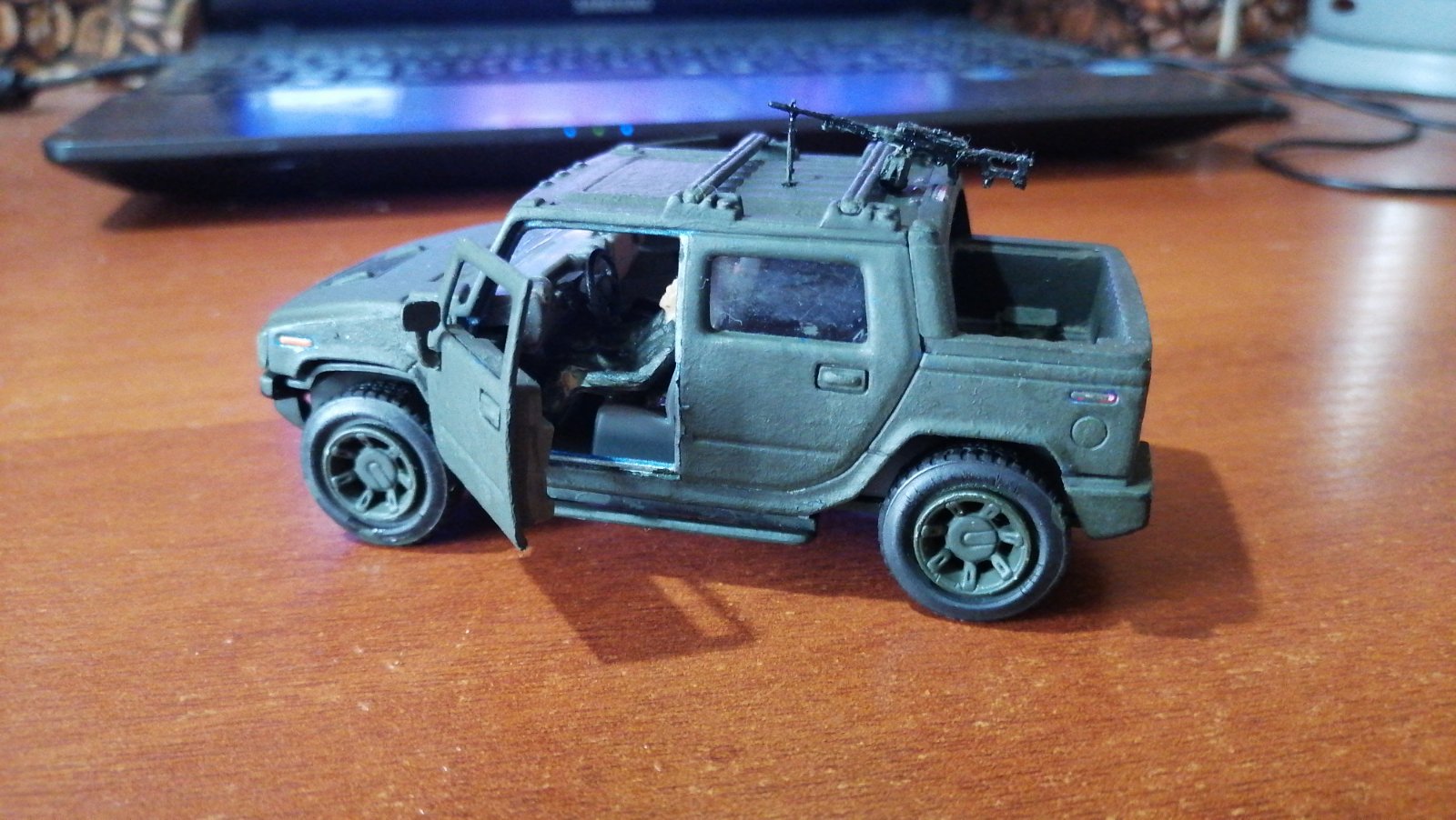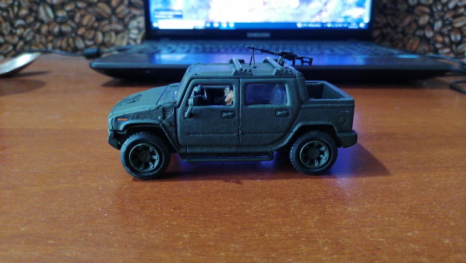 До вашої увазі Бронемашина Хамви Бандеромобіль на базі Хамві, 1:43; з двома бійцями, з кулеметом, з цинком, на передній панелі дві ручні гранати, на задньому сідінні кулеметна стрічка. Пружинковий двигунчик. Ціна 280 грн