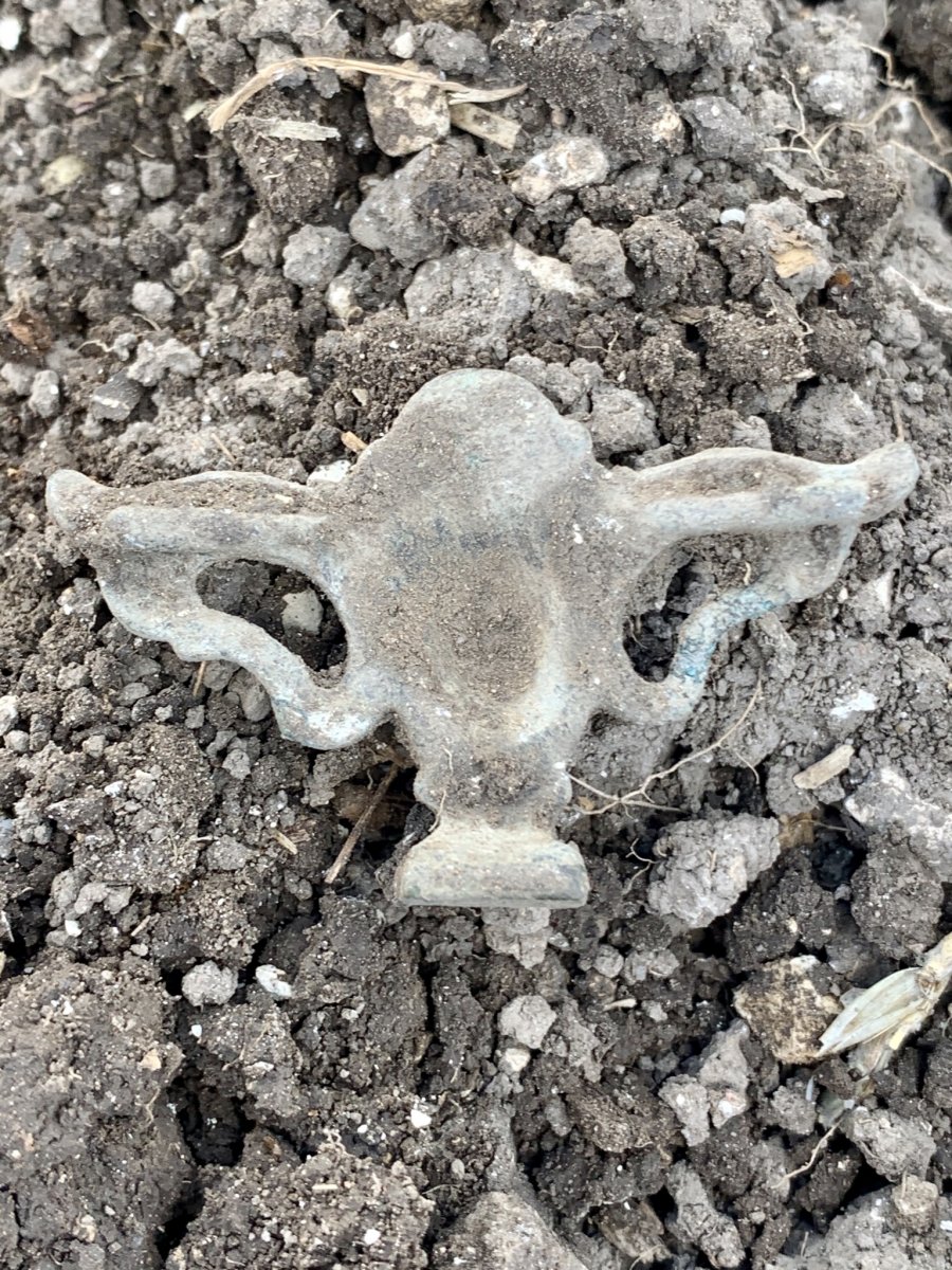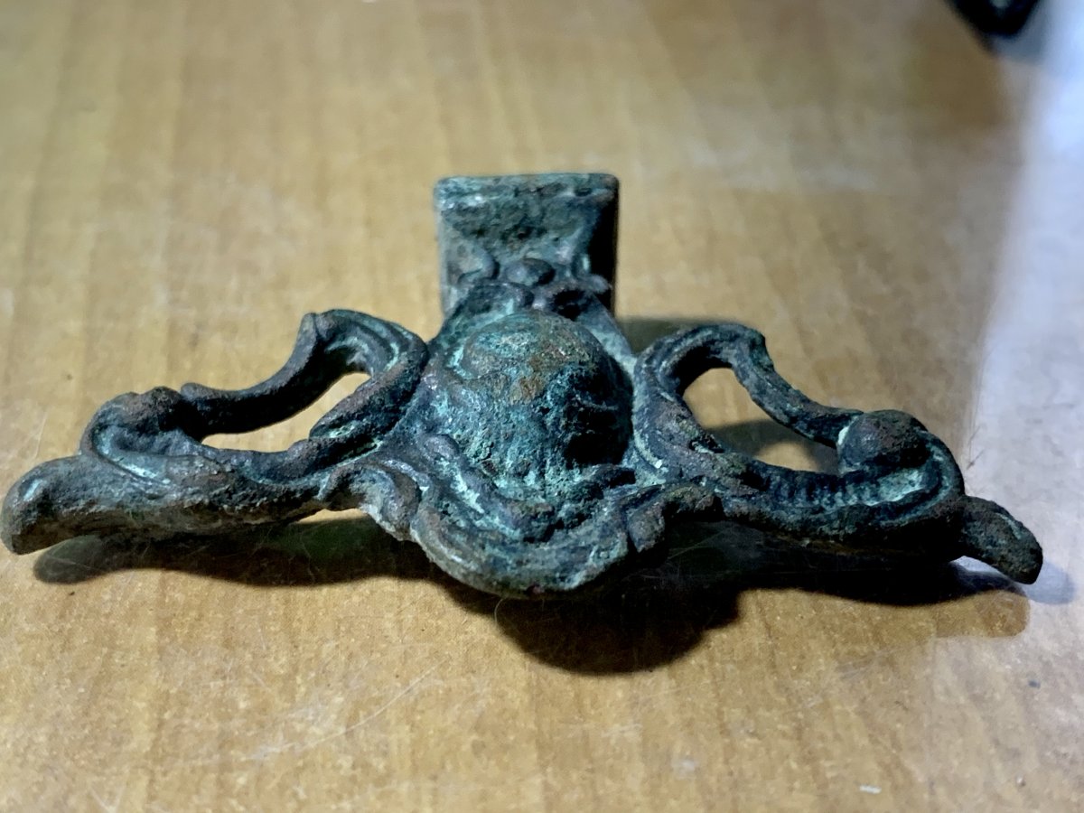 Вітаю, товариство! Проводив чергову розвідку у «Бродівському котлі» і на полі між Підлиссям та Олеськом (Золочівщина на межі з Бродівським районом) знайшов цікавий предмет з бронзи, ззовні схожий на мініатюрну статуетку (має підставку, на якій доволі впевнено стоїть на рівній поверхні)... Будь ласка, підкажіть, що це за предмет, яке його призначення і до якого історичного періоду він відноситься: