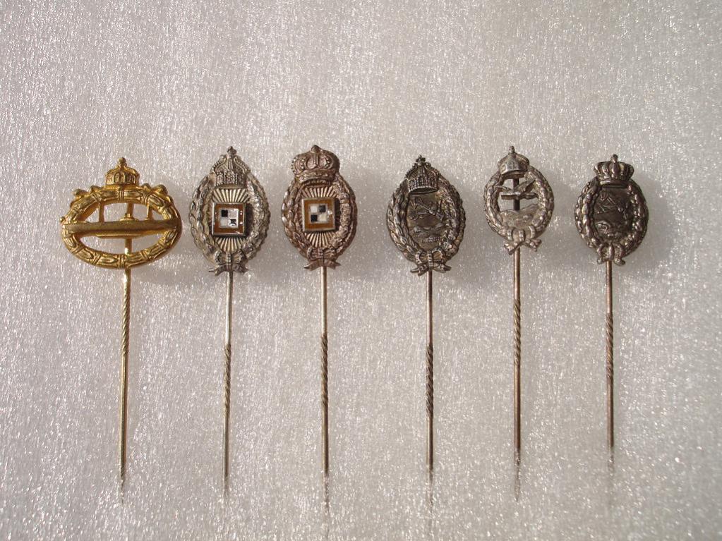 Миниатюры Кайзеровской Германии. 1. Подводник, бунт, золочение, полированные канты, 19мм - 5500руб 2. Наблюдатель, Preussen, серебро 938, эмаль, 20мм - 5500руб 3. Наблюдатель, Bayern , серебро 935, эмаль, 19мм - 5500руб 4. Знак Пилота, Bayern, серебро 800, 18мм - 5500руб 5. Знак Пилота, Preussen, серебро 800, 20мм - 5500руб 6. Знак Пилота-Ветерана, Preussen,серебро 990, 19мм - 5500руб Цены с почтой.