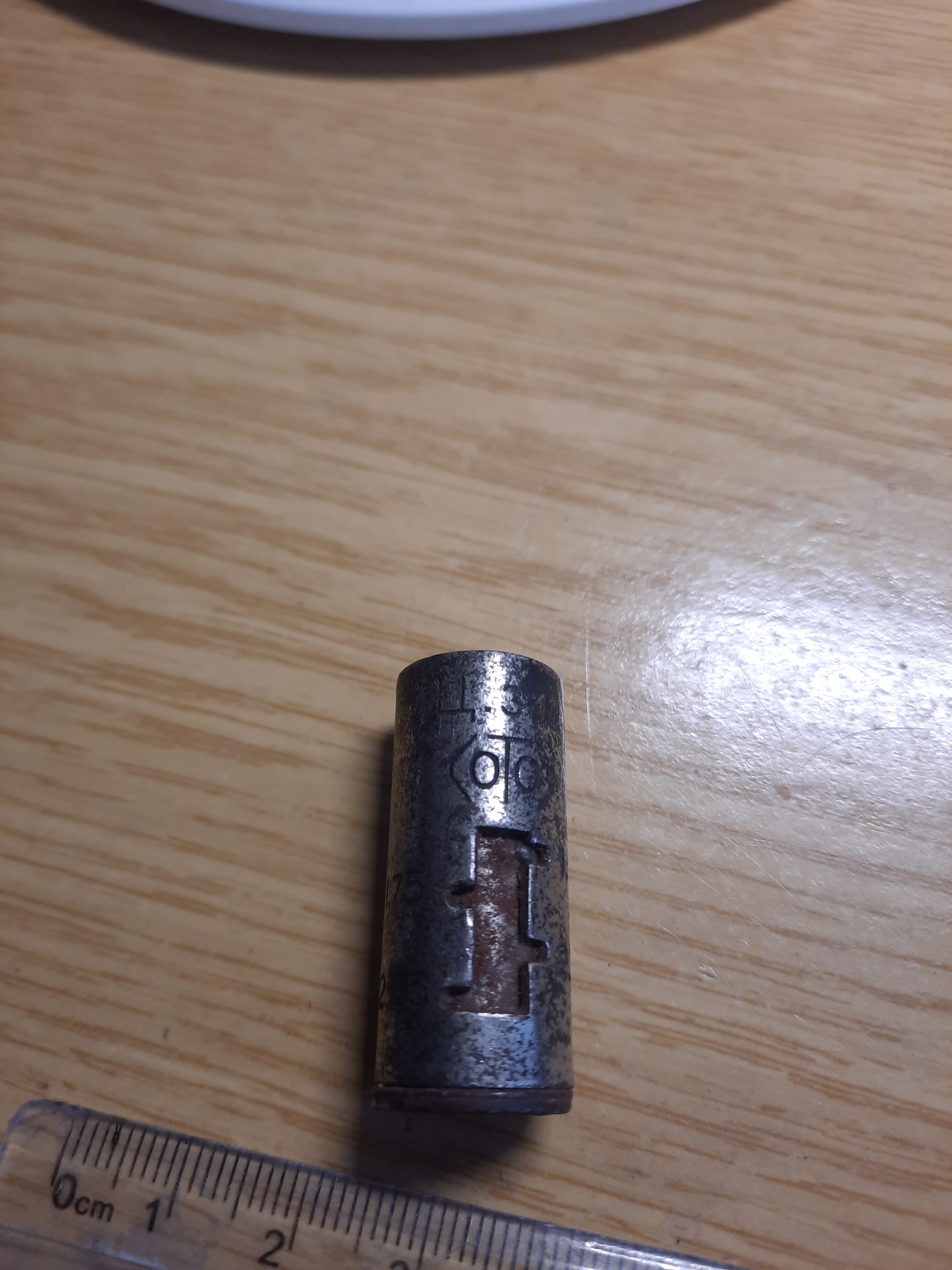 Вітаю.У коробці із дріб"язком надибалася така мірочка з ціною та фірмовим знаком.Відсутнє вушко-ручка.Хто має інформацію по предмету,прошу поділитися.З пов.