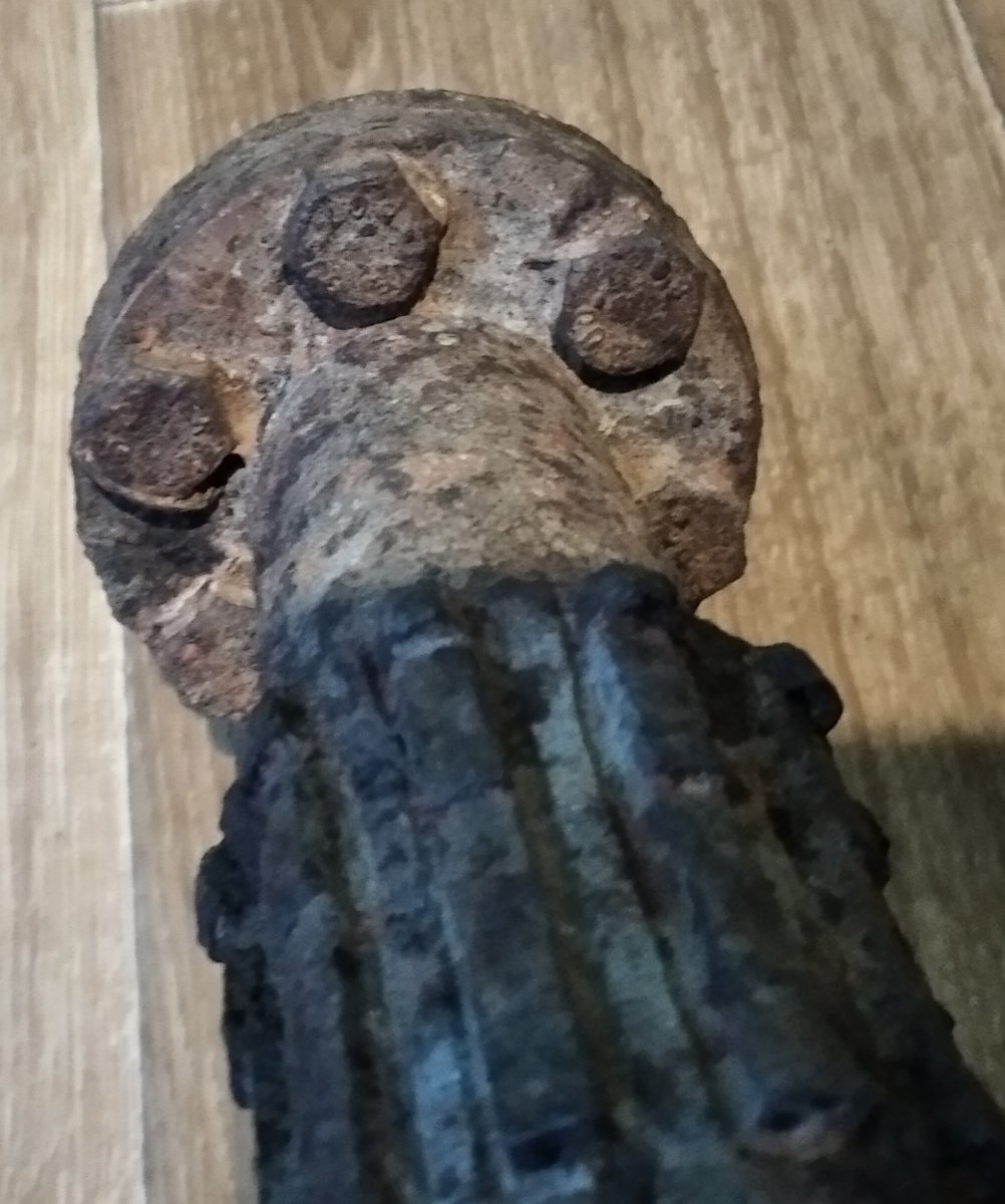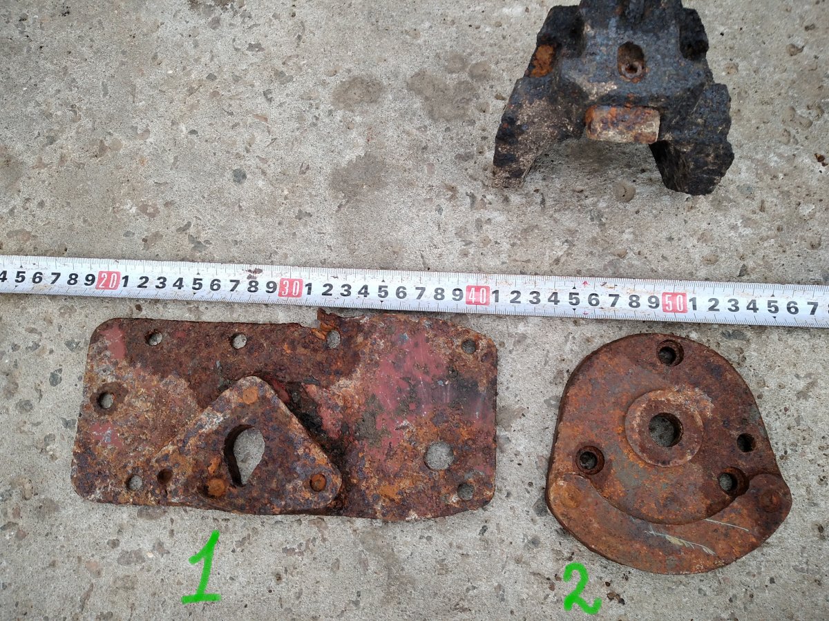 Доброго вечора. Ще декілька детальок вдалось видьорнути глубінніком з місця розриву "тигряка". Підкажіть по №1 та №2 звідки вони?Біля №1 було 6шт болтиків та згнивші алюмінієві частинки чогось.На штні проглядується якась надпись. Наперед ДЯКУЮ!!! PS.-і є ще одна зачотна знахідка по "Тигряку".