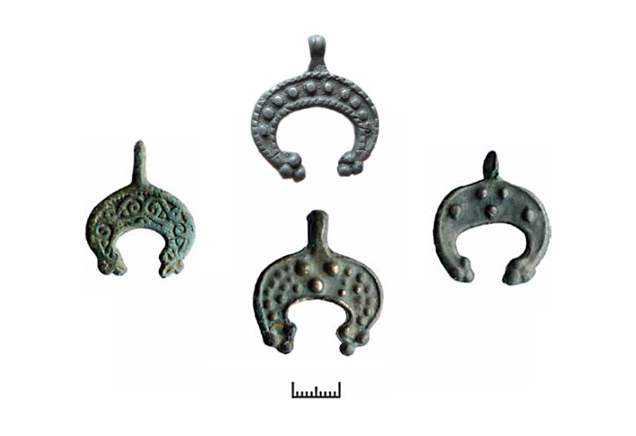 Для узкорогих лунниц характерны растительный орнамент в виде двух ветвей, расходящихся в разные стороны, и геометрический рисунок из рельефных линий и шариков псевдозерни. В XI–XII вв. широкорогие лунницы вытесняются новыми типами – остророгими, круторогими, замкнутыми, крестовключенными и др., имеющими прямые византийские прототипы, восходящие, в свою очередь, к римским лунницам III–IV вв. Джерело кацапське , то ж не точно )