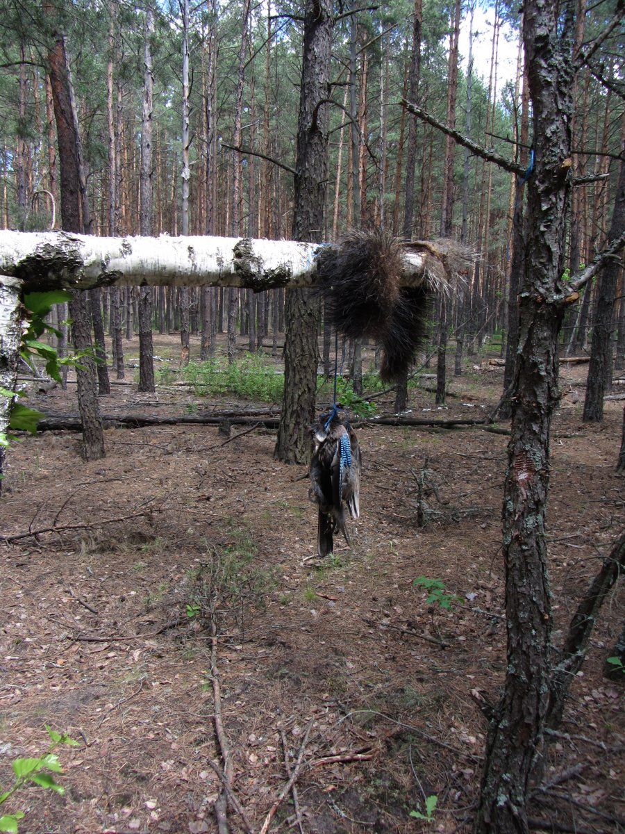 Крові, пір'я або взагалі якихось явних слідів не було. Побачив би десь ближче до цивілізації- мабуть і уваги не звернув, а так в радіусі 10км там тільки одне невеличке село, тому версія про рольовиків-аматорів така собі. Гугл за описами нічого схожого не видав. Поділіться, якщо маєте посилання де можна почитати для загального розвитку.
