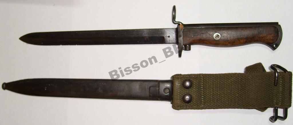 Вот две ссылки, одна ножны другая штык: http://www.gunbroker.com/Auction/ViewItem.asp?Item=121763855 http://www.gunbroker.com/Auction/ViewItem.asp?Item=121046535 У тебя сохран хуже , но выпуск похоже более ранний. Вот устройство рукоятки: http://www.usmilitaryknives.com/images_2/23-01.jpg А вот информация по клеймам: http://www.usmilitaryknives.com/bayo_points_23.htm С уважением А.
