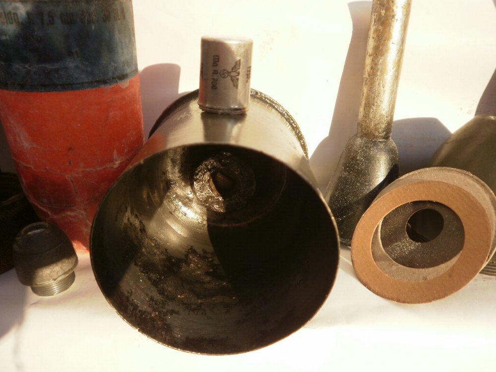 немецкий 75 мм. куммулятивный снаряд полный диактив вышибной тоже пуст. полный комплект.. 450 гр. новаяпошта .платит покупатель . приват банк . писать в личку. ввесь в клеймах на гильзе птичка .на укупоркеи вышибном тоже птички .надписи краской все родное