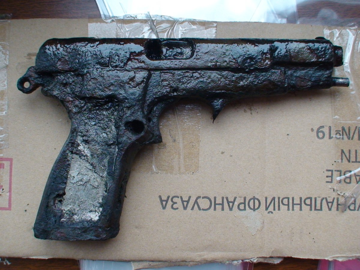 Вітаю шановні! Знайомі ловили металолом в річці І виловили таку приблуду. Кілька запитвнь до спеціалістів. 1 Що це є? (я думаю браунінг) 2. Чи варто возитись робити деактив (якщо так то як) 3. Чи можливо даний екземпляр цього не вартує і краще від нього здихатись. Дякую за пояснення