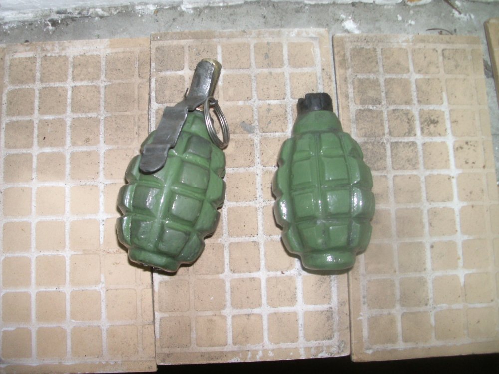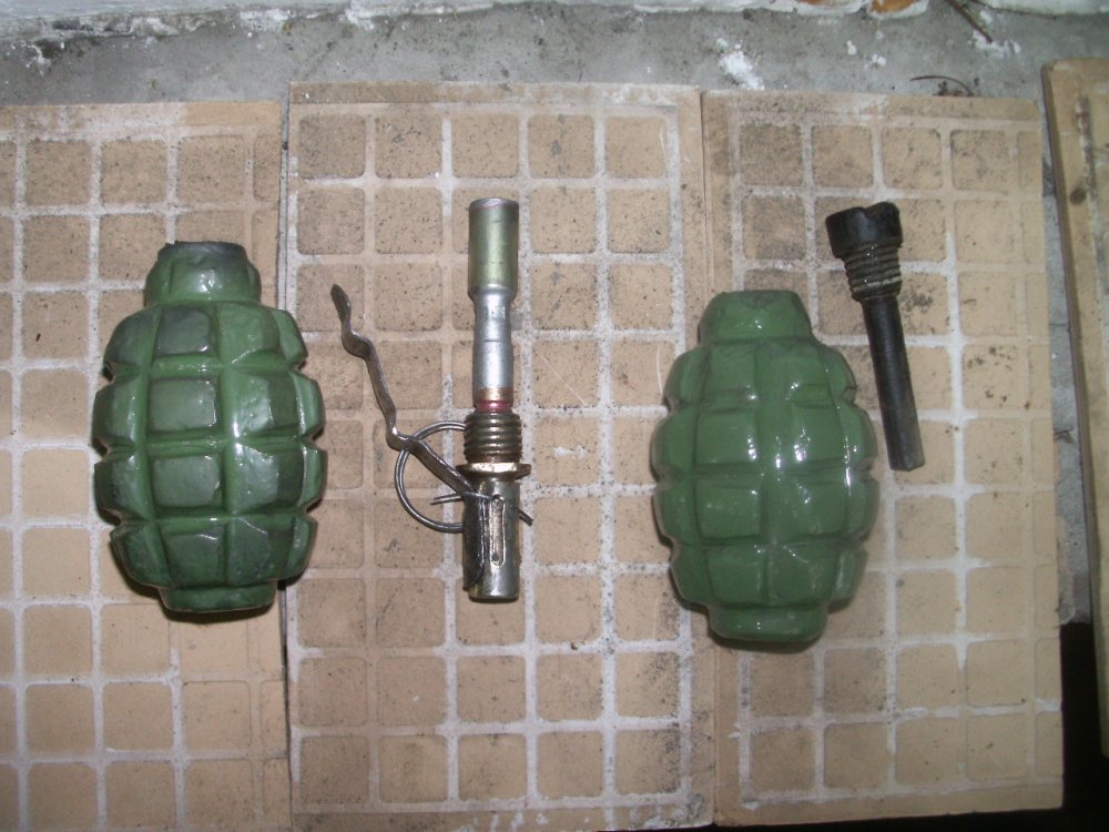 ф-1 одна с учебным запалом(перопатрон) вторая просто с заглушкой. 1) граната 200гр. 2) 50гр.