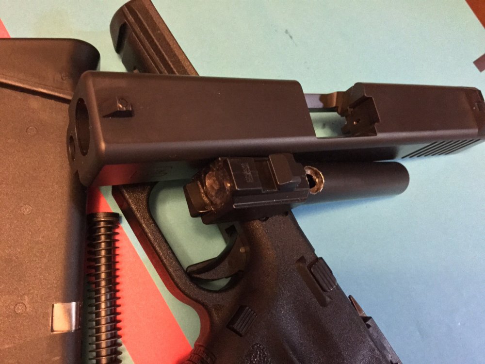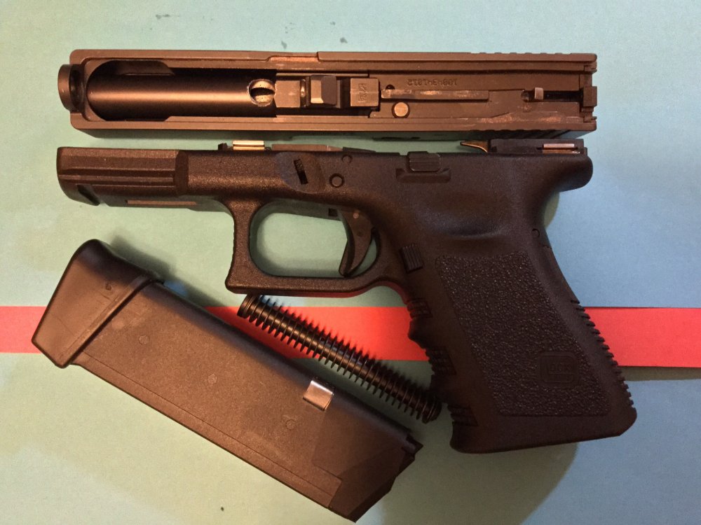 Предлагаю макет пистолета Глок-19 3-его поколения. Макет изготовлен из совершенно нового пистолета. Деактив предельно щадящий: сваркой залит патронник, за ним с нижней стороны выполнено сверление диаметром около 8 мм , больше никаких изменений в конструкцию не вносилось, ничего не восстанавливалось, не обновлялось и т. п. В комплекте магазин с увеличивающей общую емкость на два патроа пяткой. Цена 2200 долларов США. Кроме показанного на фотографиях никаких других запчастей не имеется. Все переговоры и пожелания только в " личке". С ув. Максим.