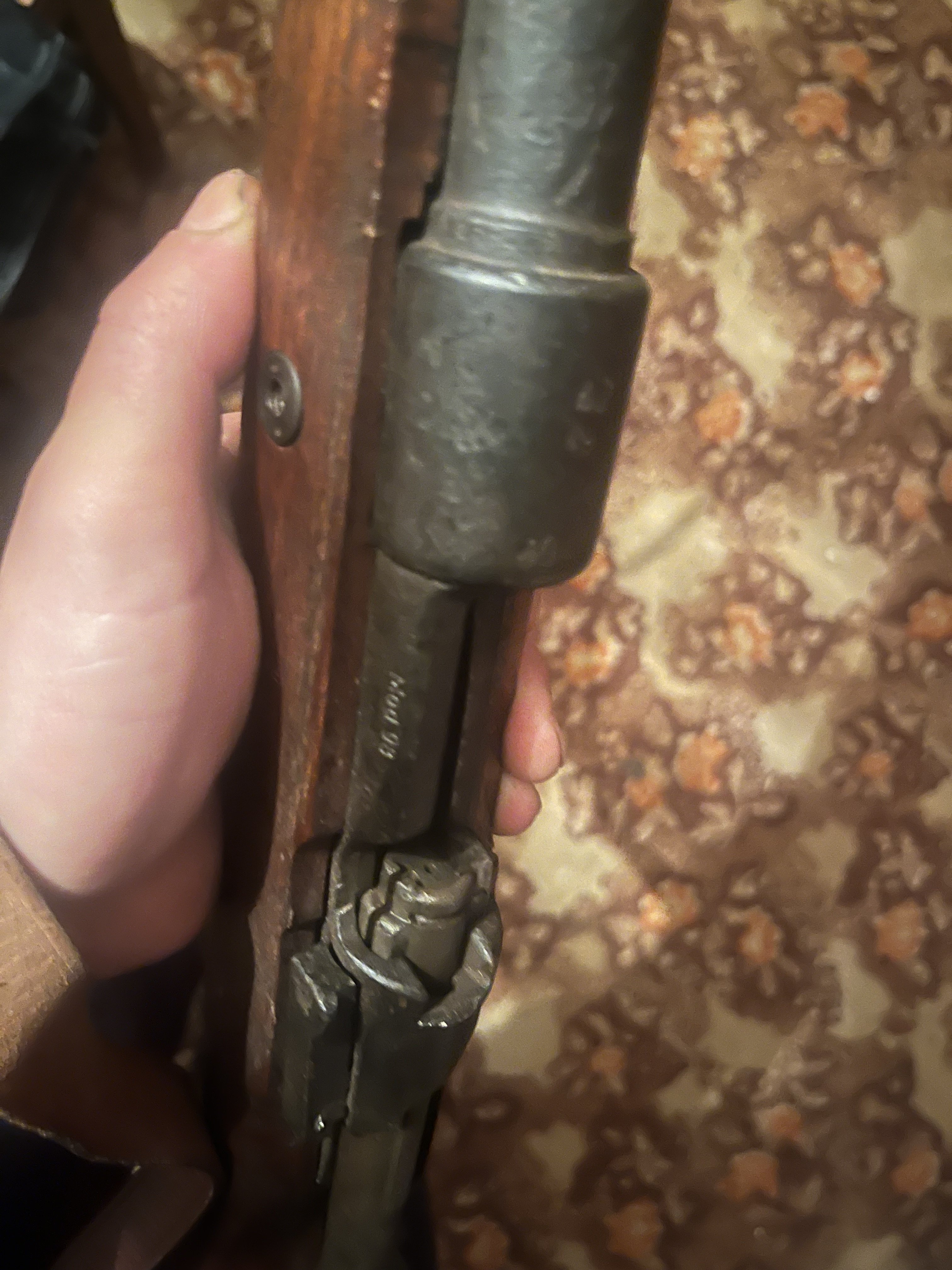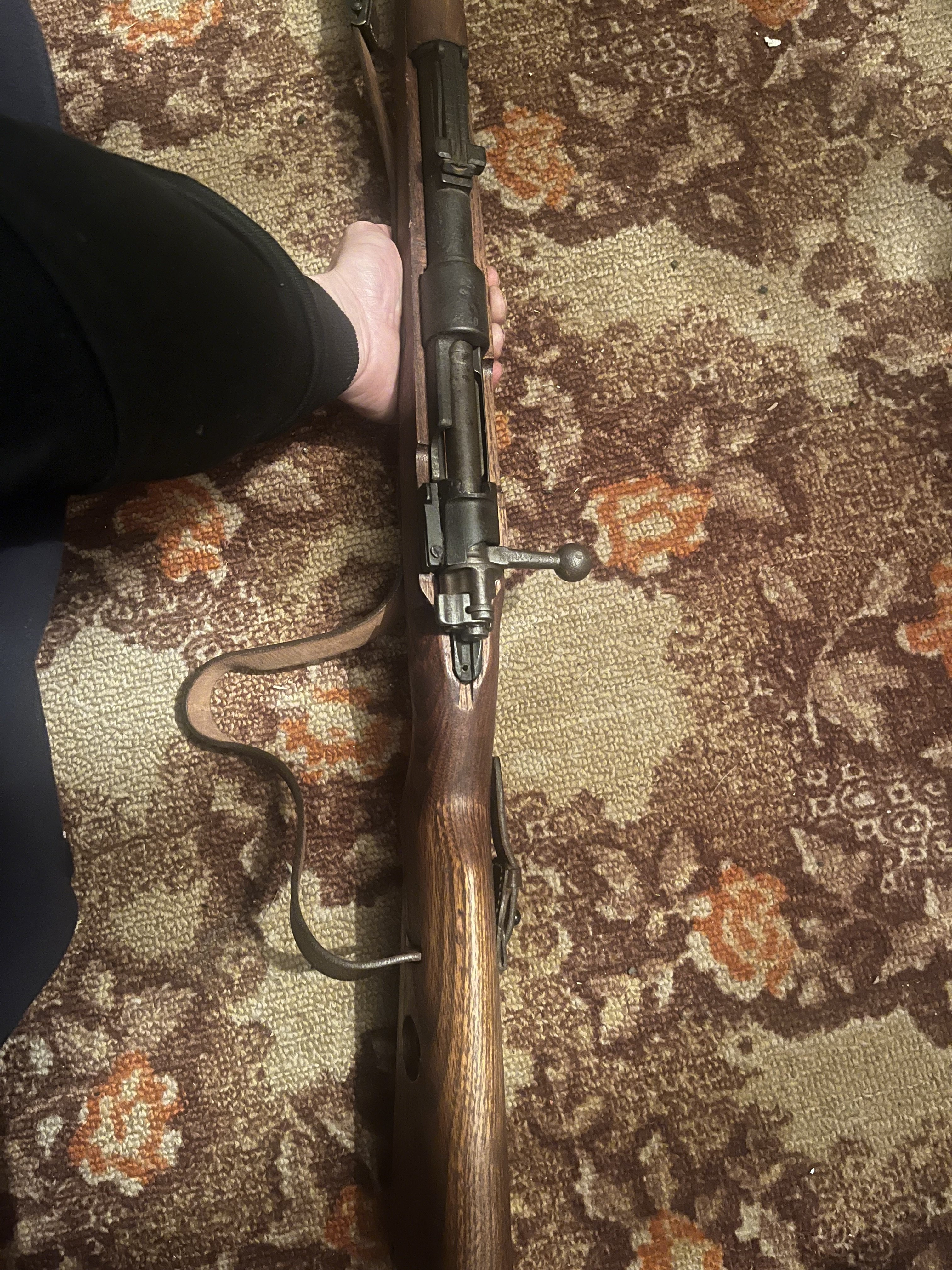Прошу оцінити предмет ..Потрапив до рук таким як він є .Ложе швидше всього новоробне як і ремінь .Метал схоже чердак .Не чистився ні в середині ні зверху .Затворна група робоча ,клацає .На металі наліт .Добре проглядаються клейма (на фото не дуже видно ).