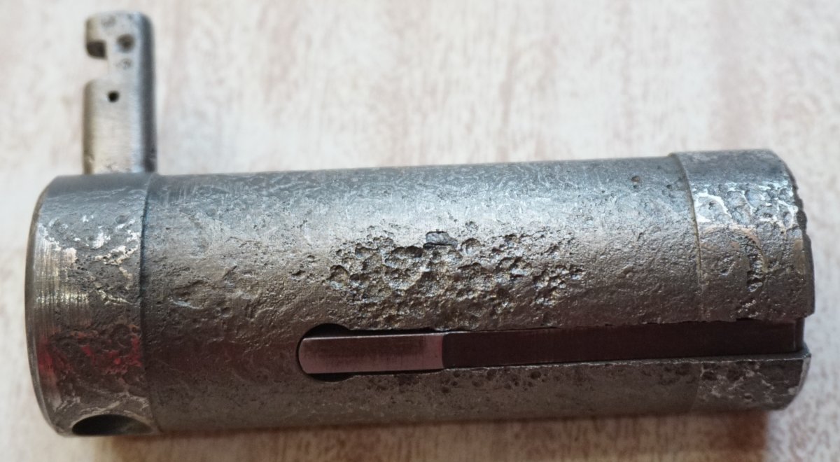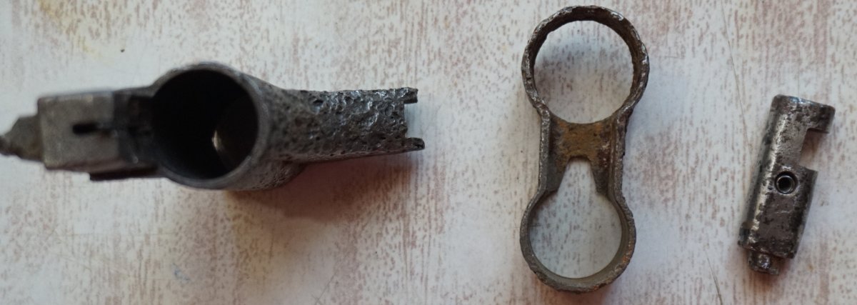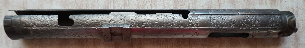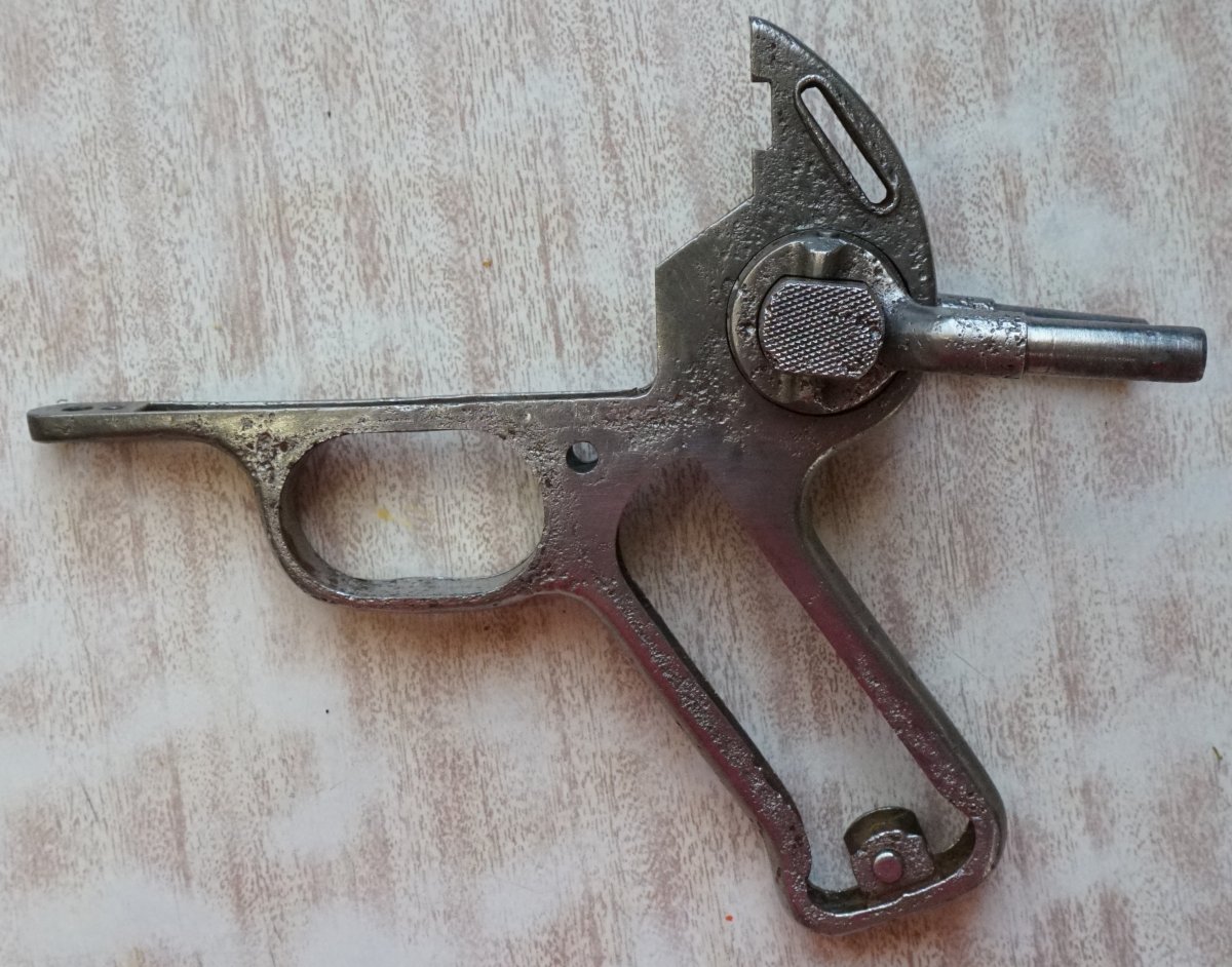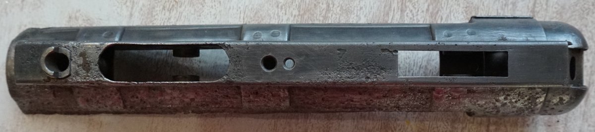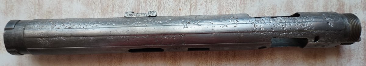Приветствую. Сколько нынче стоит такой конструктор? Все основные детали с одного предмета. Новодельные винты, штифты, трубки приклада, бакелит цевья, пружины в демпфер, гайка ствола, ремень, грибок затвора.Взводится, клацает, возможно под СХП.Штифты не развальцованы, всё разбирается. Тапками не кидайте, делал не я. Кому нужны подробные фото деталей, скину в ЛС.Стволик сверлен за патронником, патронник хороший, холостой люгер работает нормально. Накладки рукояти управления огнём оригинал. С ув.