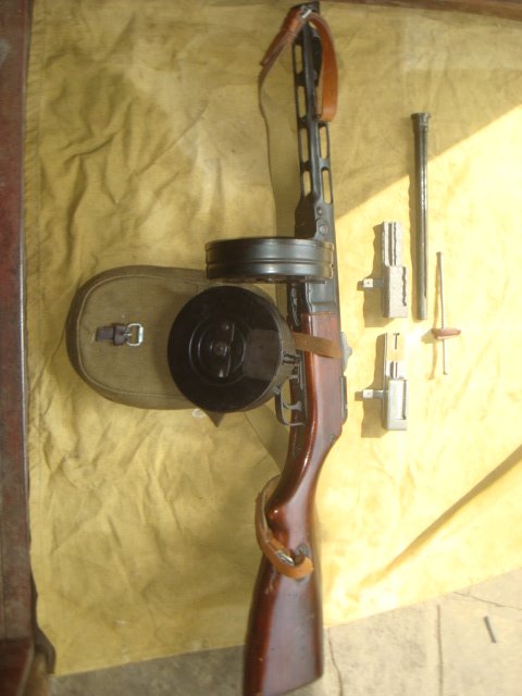 Максимальная комплектация: 1. ППШ со складским отражателем, 2. Ремень, 3. Подсумок, 4. Стволик ММГ с пропилом, 5. Стволик ММГ с заваренным пропилом, с функцией досыла-выброса ММГ патрона, 6. Демпфер с пружиной, 7. Диск с пиляными губами, 8. Диск складской, 9. ММГ затвора с целым складским зубом и пружиной, 10. Затвор копаный, без ударника, с рабочим зубом и пружиной.