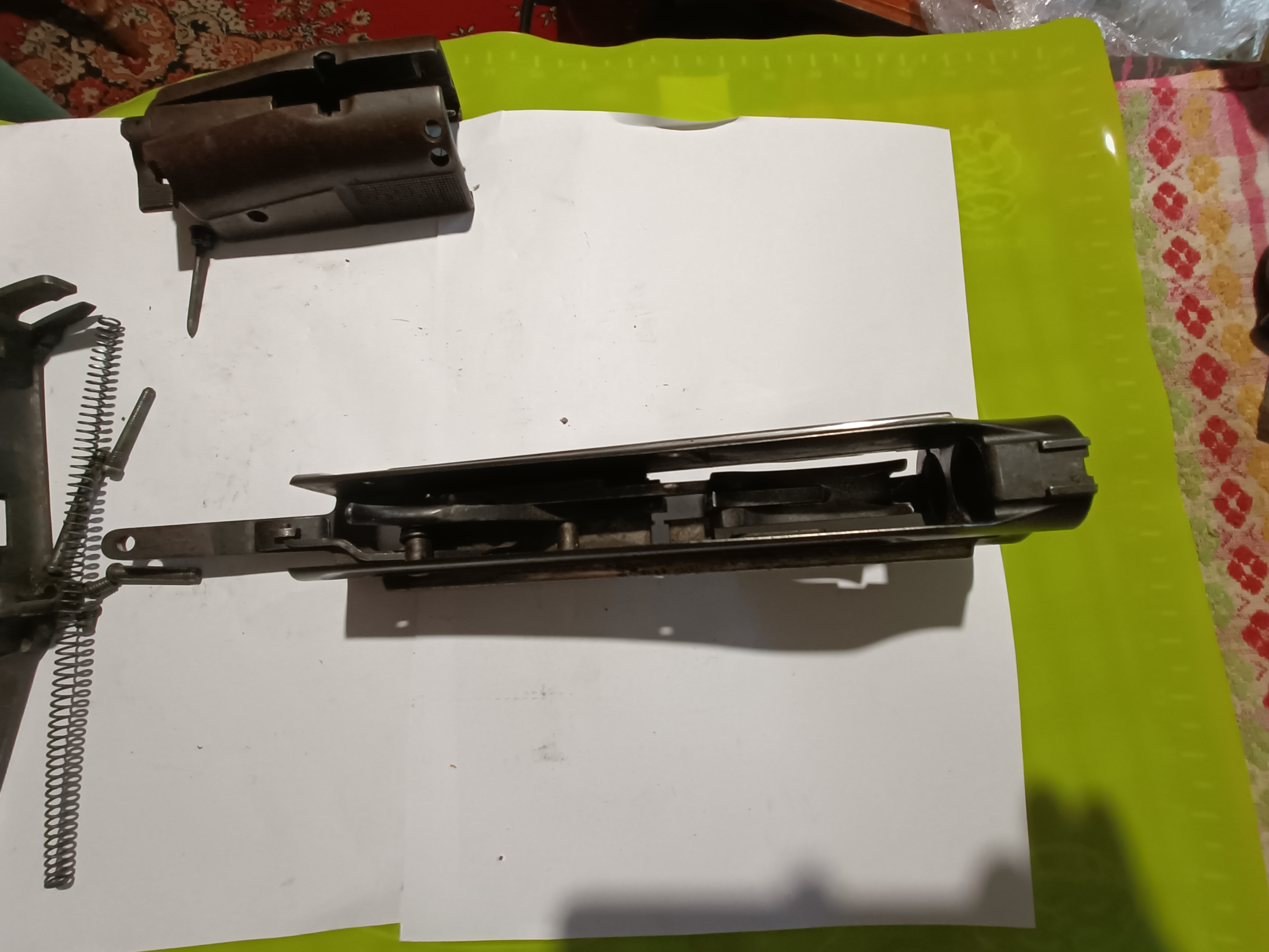 Ствол просверлен у патронника. Отсутствует личина затвора, перемычка затвора. пружинка фиксатора патронов у окна магазина сломана, приклад подрезан, цевье просверлено. Судя по шведскому наставлению, все части механизма в наличии. Все части на одном номере. Шлицы развернуты незначительно, все резьбы в порядке. Детали механизма, включая пружины, в отличном состоянии. Интересует оценка начальной стоимости на аукционе.