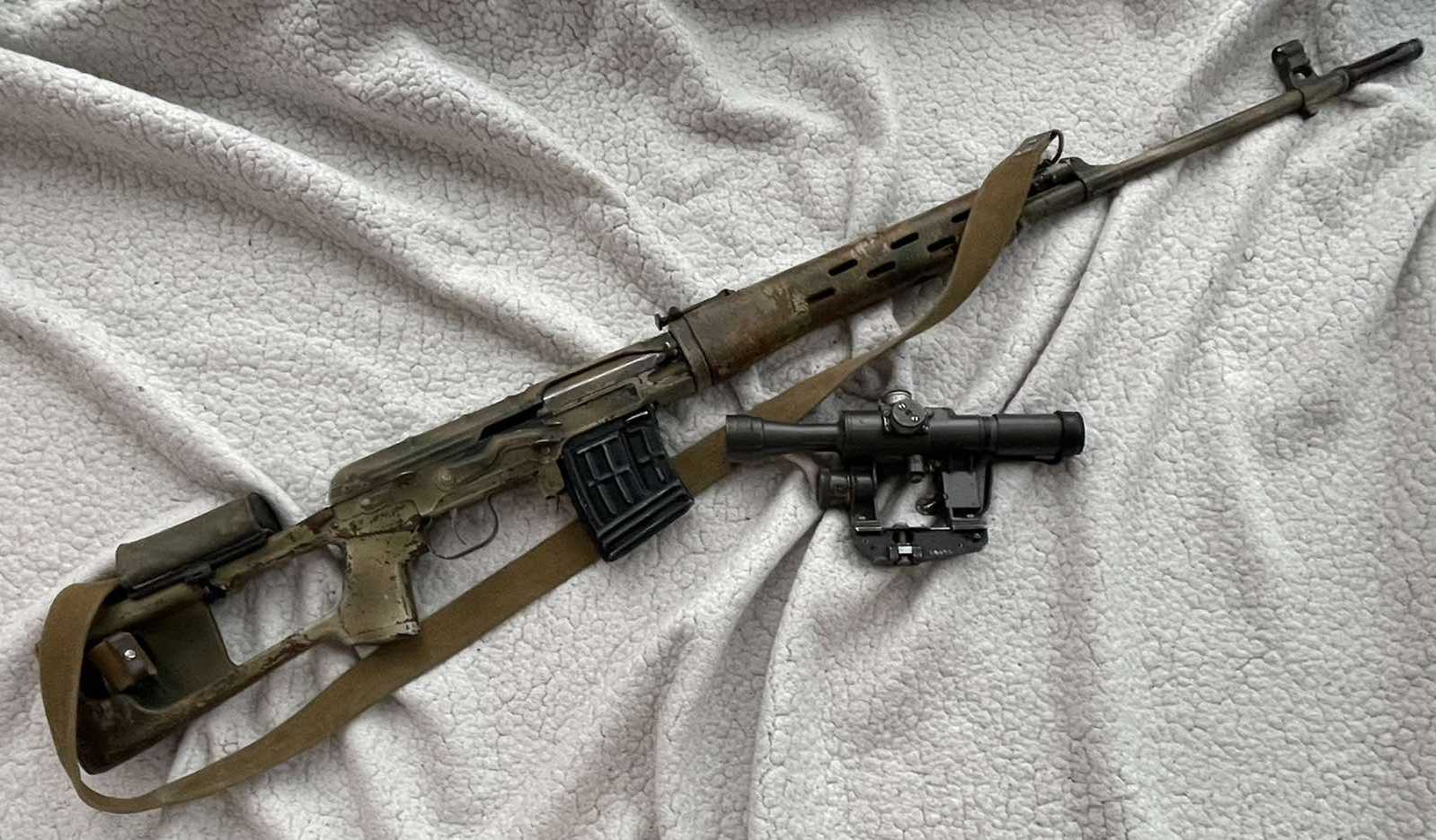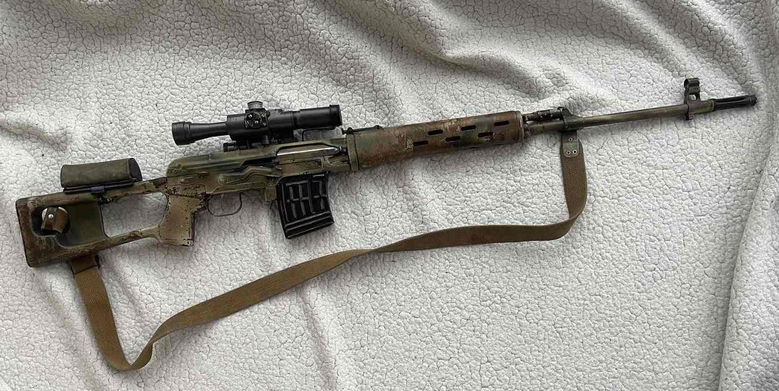 Добра Всем! Сколько может затянуть, данный дрын. СВД 1990 года " втара армия мира " Затрофеена была на Херсонском направлении, ее владелец, был поражен нашим снайпером на позиции, с ним в край вечной охоты ушел и напарник, а ещё одному было суждено в тот день не стать удобрением, скрылся с позиции. Деньги вырученные с аукциона пойдут на приобретение нормальной винтовки в нормальном калибре.