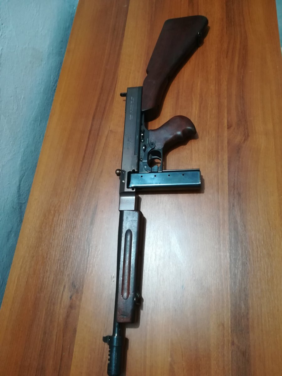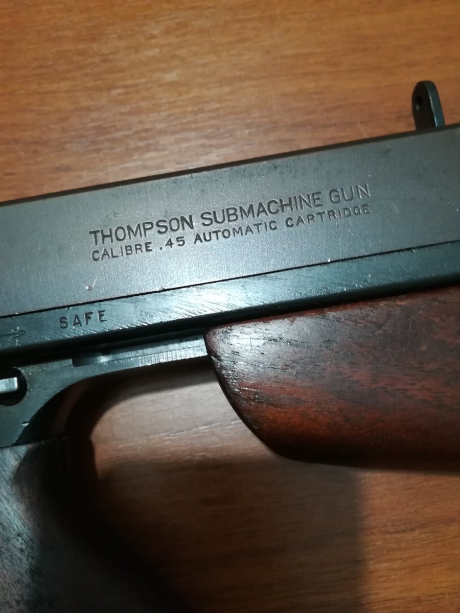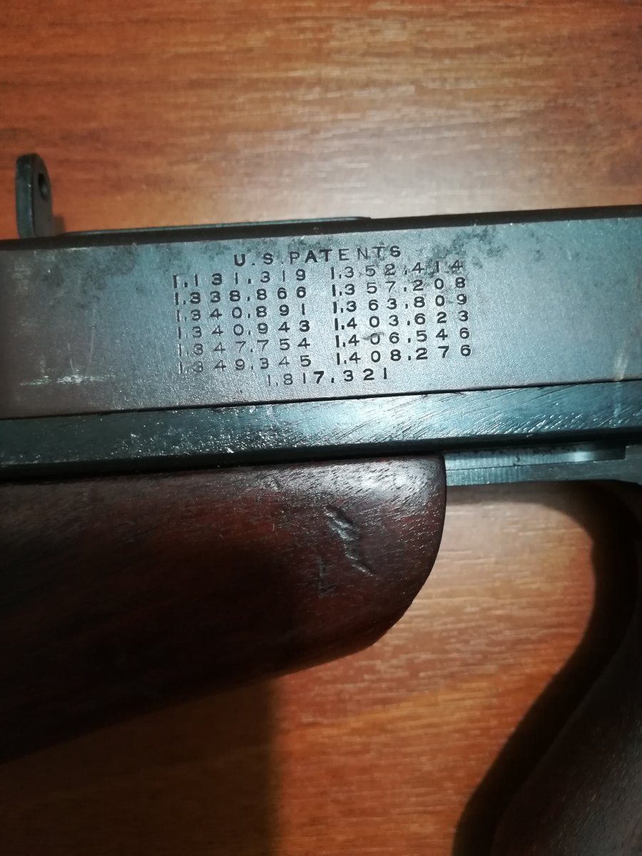 У Вас с ребристым стволом и другой прицельной планкой. Такие Томпсоны всегда дороже уходили.