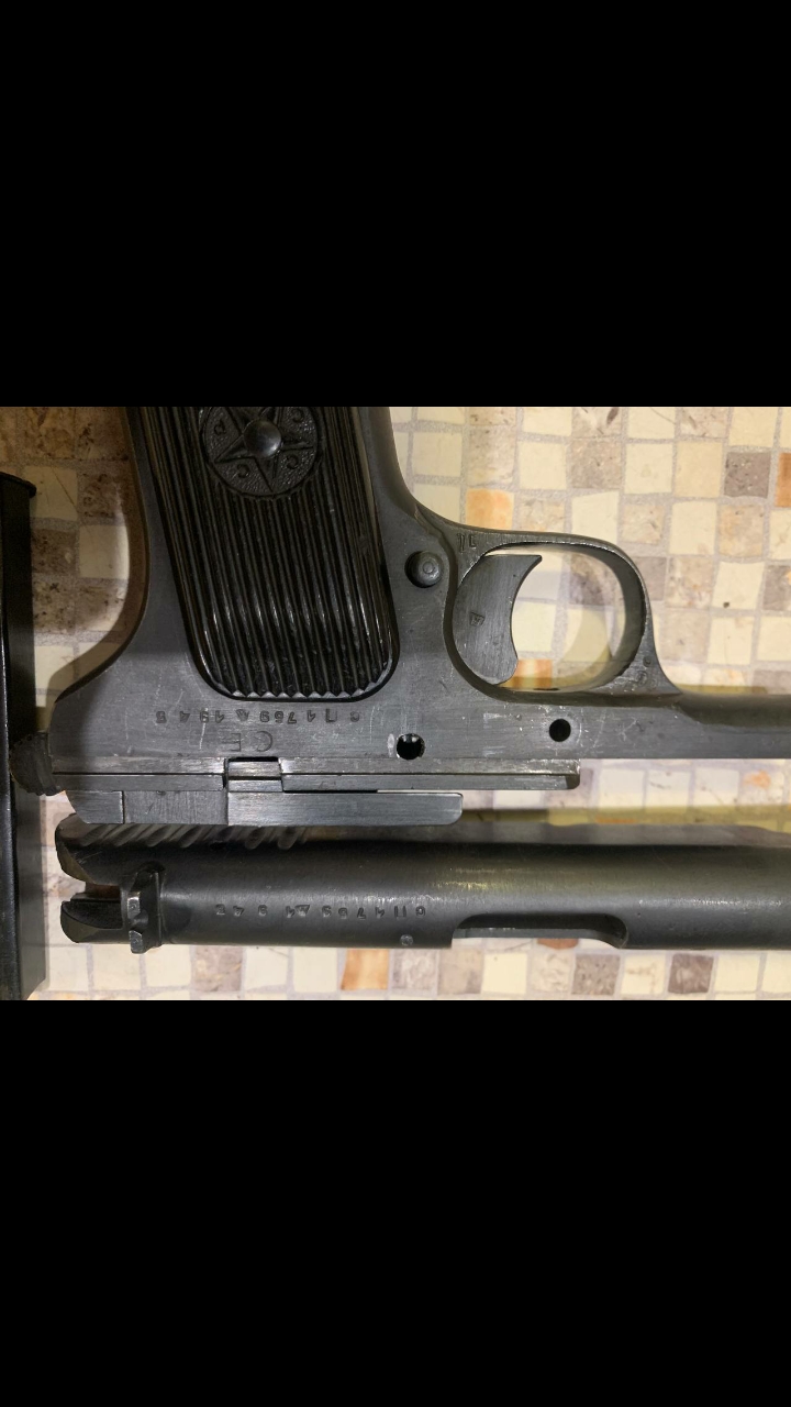 6. ММГ ТТ. Затвор 1942, рамка 1943 год. Рамка полностью целая. Фрезерована подающая часть затвора, кольца целые. Корпус усм целый.