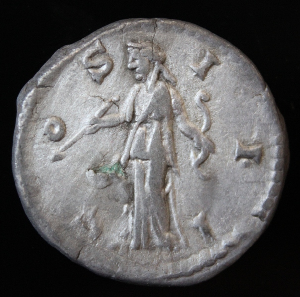 Якщо десь помилився, то не навмисне - денаріїв багато, деякі місця затерлися. Лімесні/фальшиві не розписував: вони мало кому цікаві і всі, здається, Марка Аврелія. №1 Марк Аврелій: Marcus Aurelius, AR Denarius. 169-170 AD. M ANTONINVS AVG TR P XXIIII, Laureate head right. COS III, Diana standing front, head left, holding arrow and bow. Ref: RIC 212 №2 Траян: Тrajan Denarius. Struck 107 AD. IMP TRAIANO AVG GER DAC P M TR P, laureate head right, slight drapery on far shoulder / COS V P P S P Q R OPTIMO PRINC, trophy on stump; shields and spears at base. №3 Антонін Пій: Antoninus Pius Denarius. ANTONINVS AVG PIVS P P TR P XII, laureate head right / COS IIII, Salus standing facing, head left, holding patera & rudder on globe, feeding a serpent entwined around altar. RSC 281. №4 Марк Аврелій: Marcus Aurelius Denarius. ANTONINVS AVG ARMENIACVS, bare head right / P M TR P XIX IMP II COS III, Mars standing right, holding spear and shield on ground. RSC 472. №5 Антонін Пій: в даному випадку я не зовсім впевнений, щодо самого реверса, але більш схожого просто не знайшов. Antoninus Pius Denarius. 151-152 AD. ANTONINVS AVG PIVS P P TR P XV, laureate head right / COS IIII, Fortuna standing right holding rudder on globe and cornucopiae. RSC 267. №6 Марк Аврелій в ранзі цезаря: Marcus Aurelius Denarius. AVRELIVS CAESAR AVG PII F, bare head facing / TR POT XV COS III, Pietas standing right between two children, holding two more in her arms. BMC 1029, RSC 774a. №7 Марк Аврелій, аналогічний №4 №8 Марк Аврелій: Marcus Aurelius Denarius. 168-169 AD. M ANTONINVS AVG TR P XXIII, laureate head right / SALVTI AVG COS III, Salus standing left, holding sceptre and feeding serpent rising from altar. RSC 543. №9 Марк Аврелій в ранзі цезаря: Marcus Aurelius, as Caesar, Denarius. 140-144 AD. AVRELIVS CAESAR AVG PII F COS, bare head right / Juventas standing left, holding patera and dropping incense on candelabrum. RSC 389, Sear5 4785. №10 Антонін Пій: Antoninus Pius Denarius. ANTONINVS AVG PIVS P P TR P XXIIII, laureate head right / FELIC SAEC COS IIII, Felicitas standing left, holding caduceus and leaning on short column. RSC 361. №11 Коммод: Commodus Denarius. M COMM ANT P FEL AVG BRIT, laureate head right / PM TRP XIII IMP VIII COS V PP, Libertas standing front, head left, holding pileus & short scepter. RSC 542. №12 Марк Аврелій: Marcus Aurelius Denarius. M ANTONINVS AVG ARM PARTH MAX, laureate head right / TR P XXI IMP IIII COS III, Providentia standing left, holding sceptre and wand over globe. RSC 881 №13 Антонін Пій: Antoninus Pius Denarius. ANTONINVS AVG PIVS P P TR P XVIII, laureate head right / COS IIII, Vesta standing left, holding patera and palladium; altar at feet left. RSC 201.
