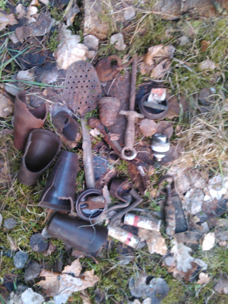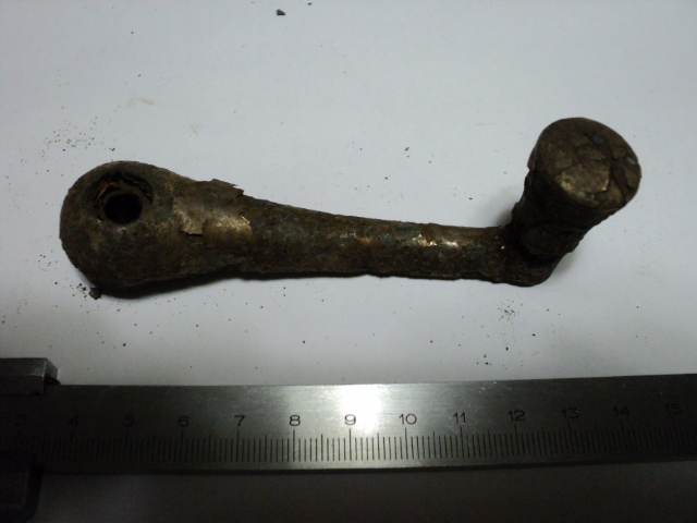 Да. Еще топор там был, остался в лесу. И столовые приборы тоже. Вот три и ручка от автомобиля, которые взял с собой. Интересно, от какого авто ручка?