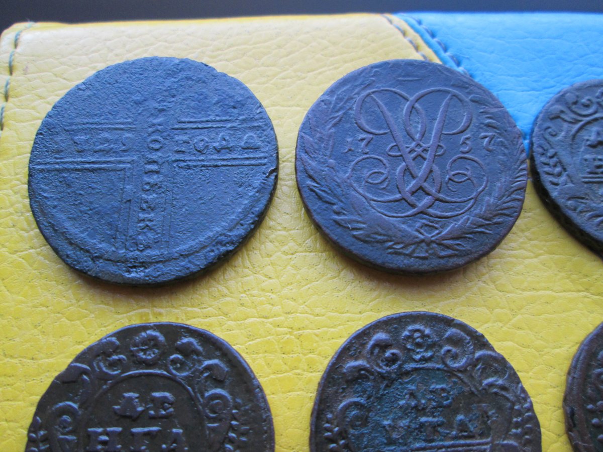 вот общая лопата (слева вверху два свинцовых грузика, они не обычные вот и лягли на лопату), 6рублей из нах один Александра, остальные Николая.