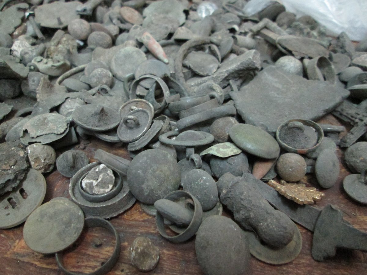 Решил сделать переборку пуг,пряжек,пуль козацких,итд...колечки,всяко разно...монет не считаю того что много подарил, и не считая какаликов,так как их продал наверное больше 2000 штук...если не больше...Вся горка собрана чуть более чем за 2 года копа!....потом с фотаю все в разложенном виде по кучкам....