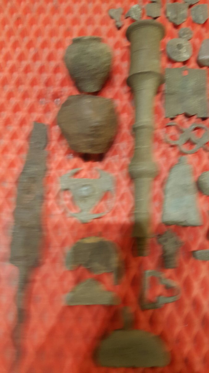 Привет!!! Ну отак всегда.... Только решил к тебе ехать, а тут карантин! Находки не просто АГОНЬ... А фейерверк!!! И ручки, и булава, и перстенёк( к стати, я один там вижу мужика с лопатой в одной руке и дэусом в другой?:)) Ну и медалька...Правильно сказали! Не чисти!!!! Ни чем!!! Не просто редкая, а архи редкая... Что бы не говорили, меньше 10 енотов даже речи нет!!!! Перстень...Очень интересен!! Статусный... Думаю 10-12 век.( ИМХО)