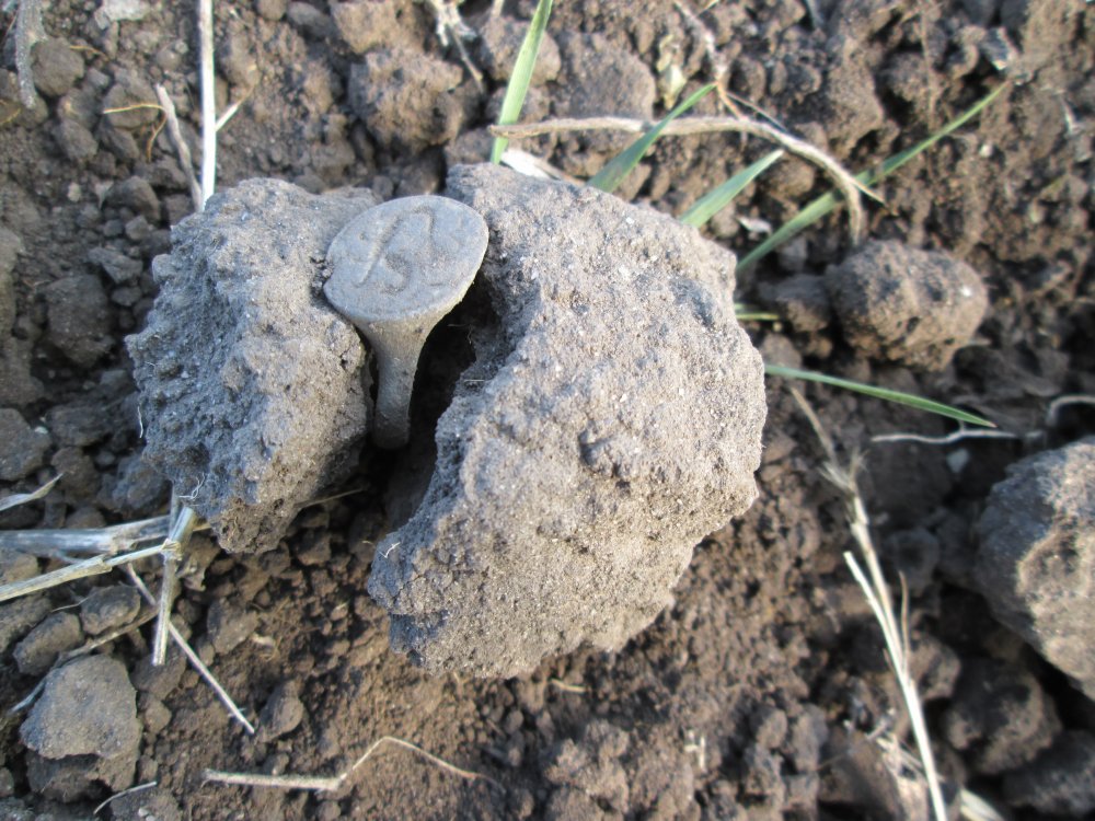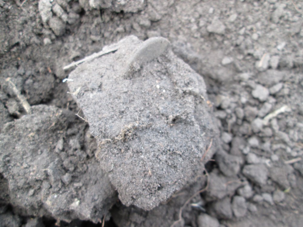 Всем Здравия!Появился зазор свободного времени,быстренько собрался,завел свою консервную банку!и вперед.До места поиска ехать 2 часа,идти 40минут,световой день щас короткий пришлось нарушать пдд,в сл.раз не буду. Только приехал не успел даже прибор достать,тут откуда не возьмись... на рисовались 2 человека.Времени было мало,по этому в дискуссию не вступал, был краток.Человеки сказали что это места прокурора,и мне нужно в срочно порядке покинуть территорию,так как тут ВСЕ куплено,я сказал что я с общества археологов Украины!у вас тут ночью упал метеорит и мне его поручено найти...скоро уеду....началось кучу вопросов я вежливо удалился.Пришел на место... сразу в уме поделил все на квадраты, и вперед...через 1 мин бзынь первый пятачок...ну во общем смотрите что получилось...первый пятачок е2, на этом месте!