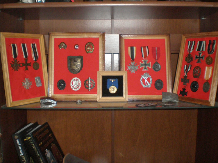 Ответ: Мой "коллажик" Хочу что то типа этого сделать, но под советские награды, ничего придумать не могу, фантазии не хватает. Пока просто в рамочке висят.