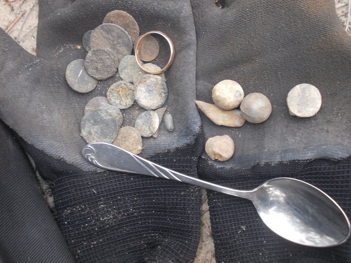 В лесу песочек как пух, даже корки нет. Чернозем на поле хрен поймёшь, местами лопата входит, а местами такой, что лопату не вгонишь и бросаешь нахрен вкусные сигналы. Обидно, потратить 15минут на выколупывание с 10сантиметровой глубины бухарского динарика, а они, сцука,пятьдесят к одному. Вывод-не время ещё сезон закрывать, рано, по крайней мере на песчаном грунте. Мы завтра прём.