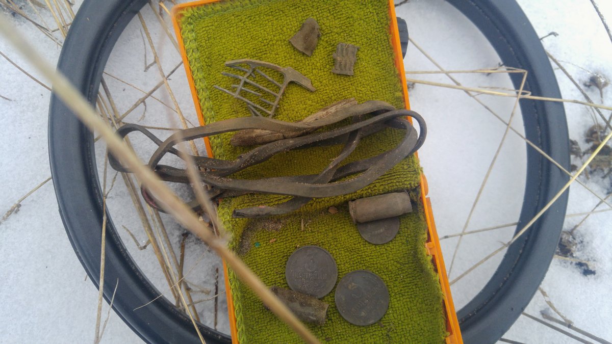 первый выход с Джимом получился оооочень коротким-минут 15 и началась зима,метель,за 15 минут на выбитом умровском полигоне несколько очень глубоких сигналов,реально глубоких,три монетки,пломба,значок гто,так что мне работы хватит,и по полям и по лесам и по выбитым местам