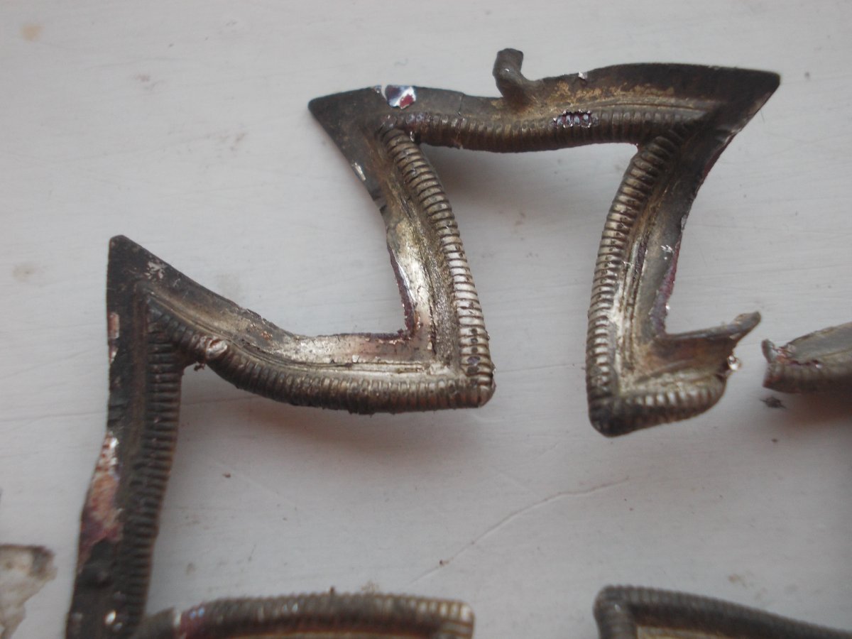 Сегодня не долго побродил по лесу,кроме гильз, пуль и нескольких советов попалась интересная германская штучка!Кстати ,была скручена в один комок,я заинтересовался интересным рельефом узора,начал потихоньку раскручивать и выравнивать и получилась половина обкладки железного креста!