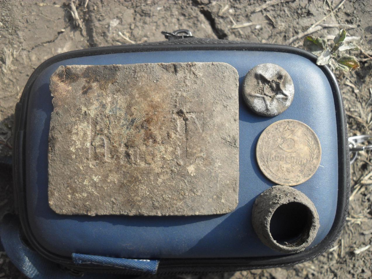выезд получился спонтанный, хотел разведать речку воле бывшей деревни на предмет сброса колхозной техники ради чермета. в том году там было тухло в плане находок, да и копано сильно было. в этом году вобще испытал шок: вылез как на луне, местные копают черняк ну и находочки тоже и ямы разумеется не закапывают. перекопано все сплошь и рядом. ну думаю ваще пофиг, включил пошел, раз пробка, два жестянка, три и немая сцена. между двух ямок между которыми растояние ну метра полтора не больше вылазиет такое вот чудо на обратной дороге еще зацепил 15 коп 1961. они случайно не редкие какие нибудь, а то цифра у них округлая, у меня полно таких было и там цыфры прямые были. так что кто в курсе скажите что к чему. выбитых мест не бывает. дважды мной доказано уже всем удачи
