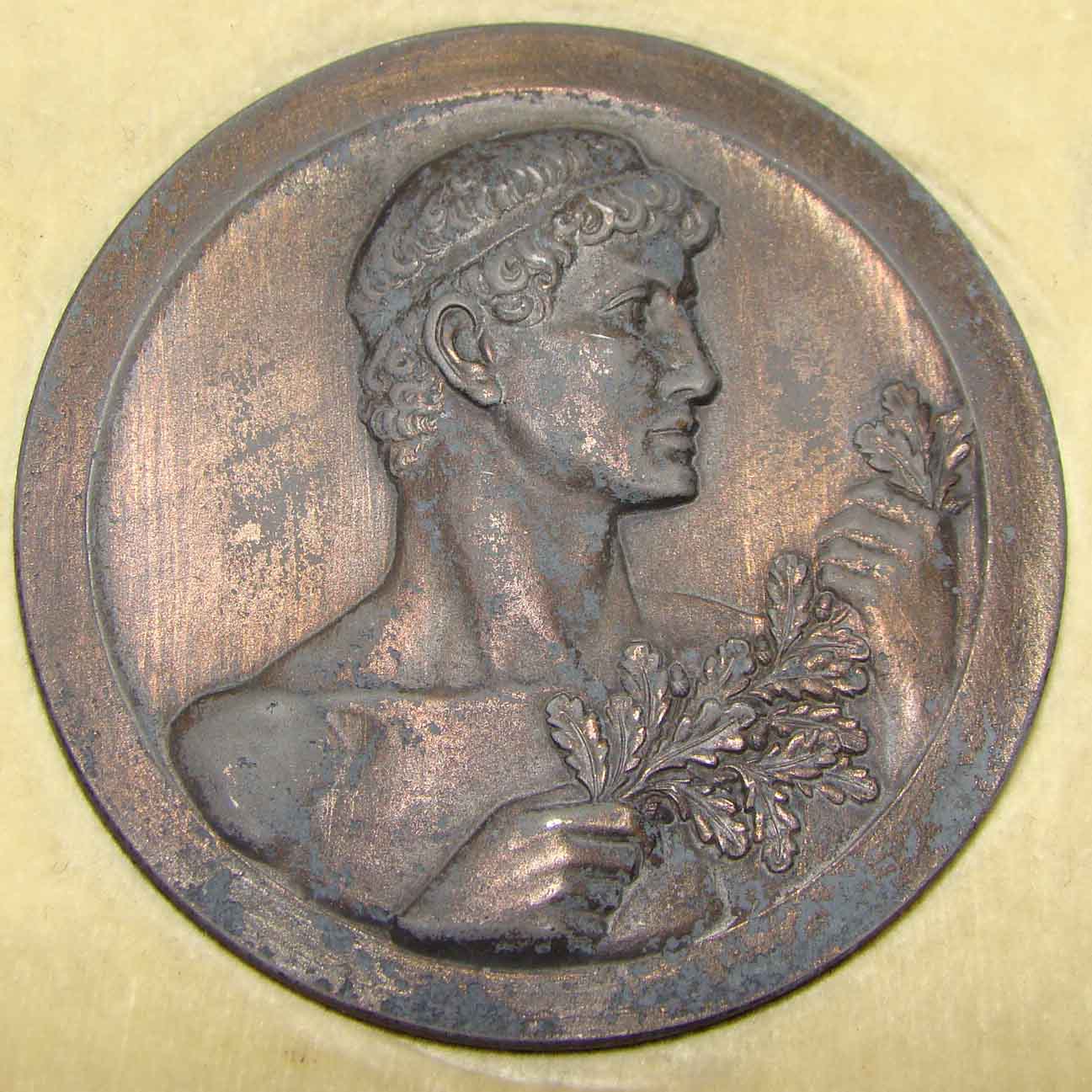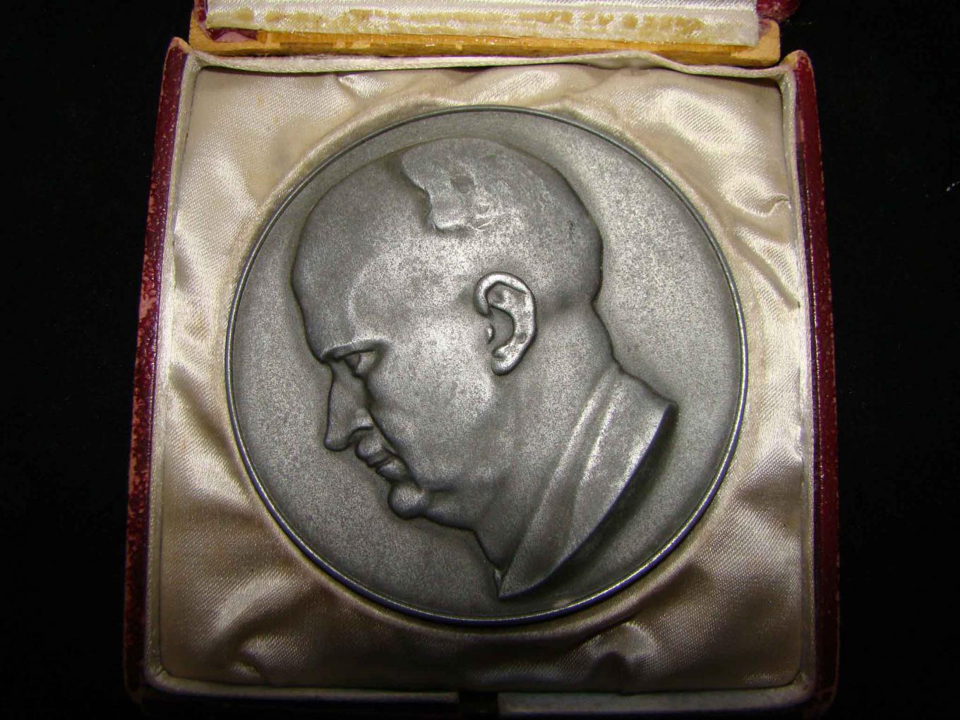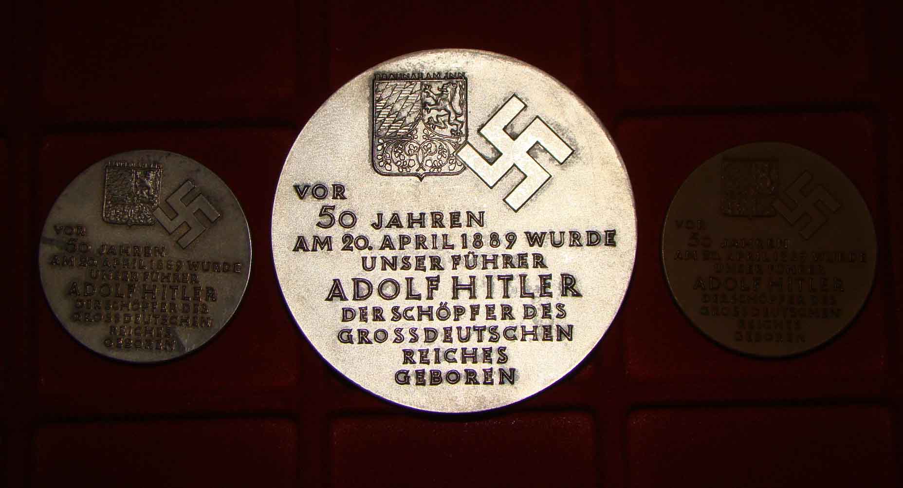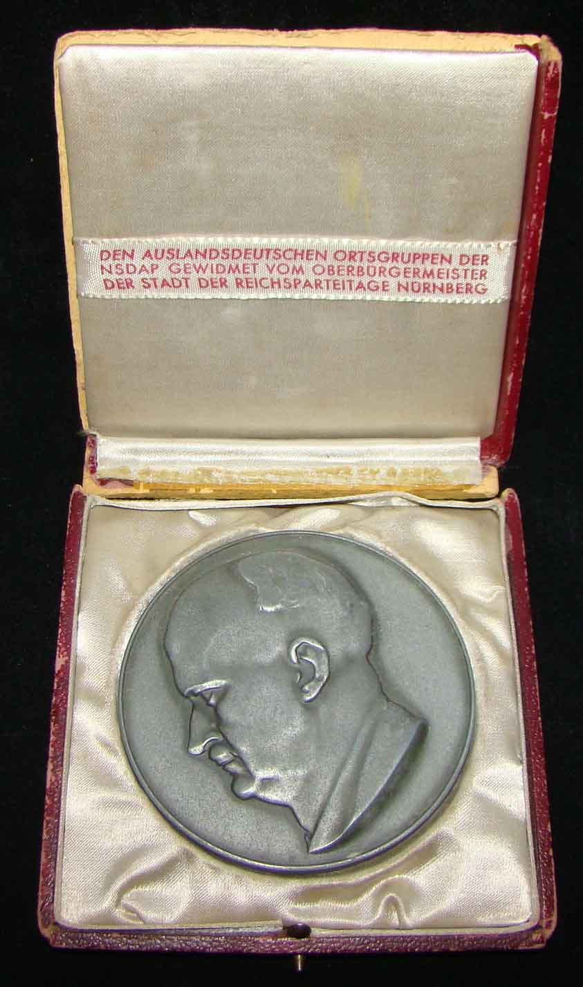 две фарфоровые медали (плакетки настенные), вручавшиеся школьникам (видимо особо достойным или же просто в школу) Нюрнберга от лица Обер-бургомистра Нюрнберга к юбилею Фюрера 20 апреля 1939. Интересно, что сам Обер-Бургомистр Вилли Либель покончил с собой также 20 апреля 1945 года (есть мнение что был убит). http://de.wikipedia.org/wiki/Willy_Liebel обе медали одинаковые, одна из бисквитного фарфора, вторая видимо тоже, но тонирована. диаметр 88 мм инициалы скульптора есть, но имя не знаю. качество работы очень высокое, высокий рельеф. А белый бисквит прям под слоновую кость