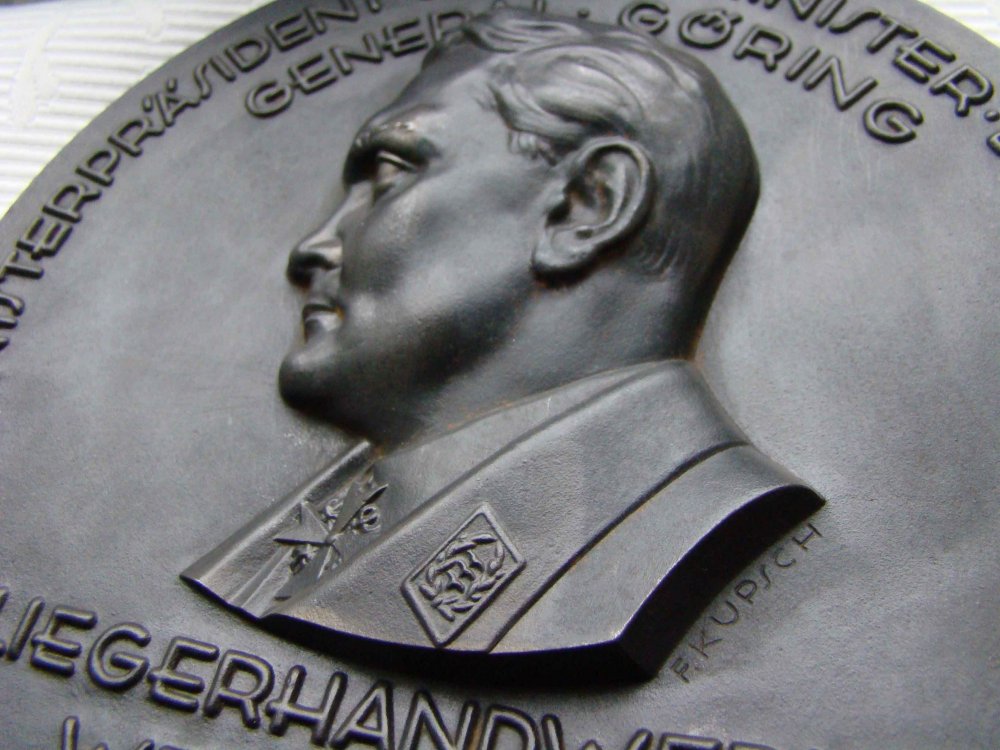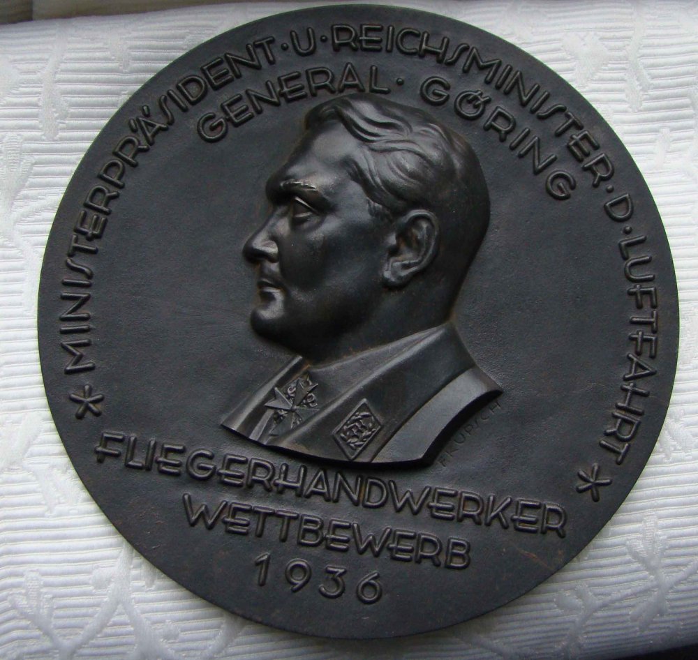 образец художественного литья известной литейной мануфактуры в г.Лауххаммер, в Бранденбурге. большая плакетка от Министр-президента и рейхсминистра авиации, генерала Геринга. 1936 год. Участникам (или победителям ?) соревнований Fliegerhandwerker (фиг переведешь то сразу??? короче тех кто занимается изготовлением и разработкой всевозможных хитрых и нехитрых летательных аппаратов, планеров, самолетов и пр. ? ) Очень качественная работа, супер-литьё.