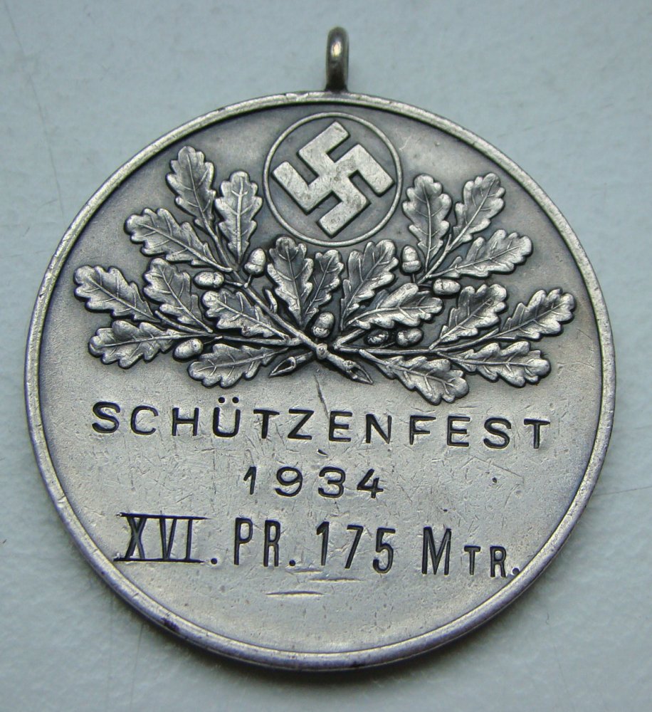 нашёл ещё одну, вероятно было с чем то наподобие серебрения, как и показанная выше, из сети. можно предположить что было три варианта - бронза, серебро и золото. Хотя это только логическое предположение, с которым не всегда соотносится реальность. Опять же, это если медали были только для команд-призёров. А могли выпустить просто к Чемпионату. Но в этом случае не логичнее было бы выпустить медаль с надписью Gaumeisterschaft или Meisterschaft Generalgouvernement, т.е. именно Чемпионат. Здесь же всё таки стоит именно Чемпион = Meister теперь осталось определиться какая из них будет лишняя