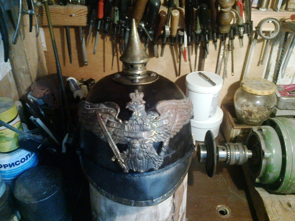 Вот поднял такого инвалида. Работал с ним более двух недель.Орёл на пикель, Драгун обр.1867г Не хватает накладного прусского креста.