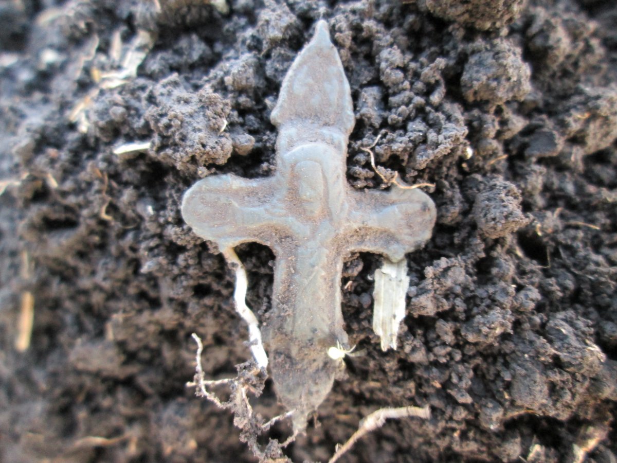 Доброго дня.Після обіду їздив на поле .Вдалось походити тільки годинку,почався дощ.Знайшов тільки хрестик і фібулу,яка не попала в кадр.
