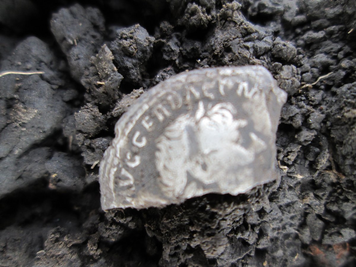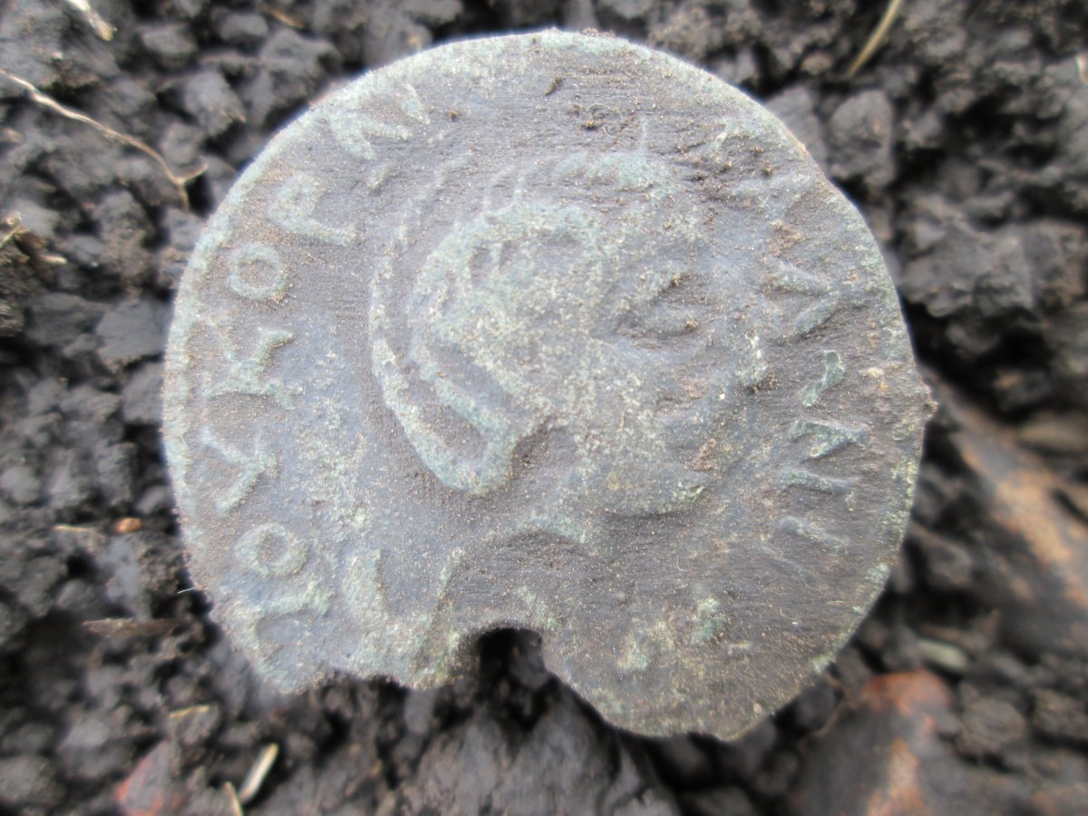 Подивіться на фото 3))Явно бронзова монета,теж поломана.На 4-му не факт,що срібний. Взагалі,коли переплавляли денарі - не факт що ділили.Ділили на двоє,тому що потрібно було менший номінал.У мене є половинка,і явно сліди від зубила.Антоніани теж часто ділили. А ,і ямки не мої,я слідів не залишаю.Був там кілька раз,з камрадом Альтер Мен))