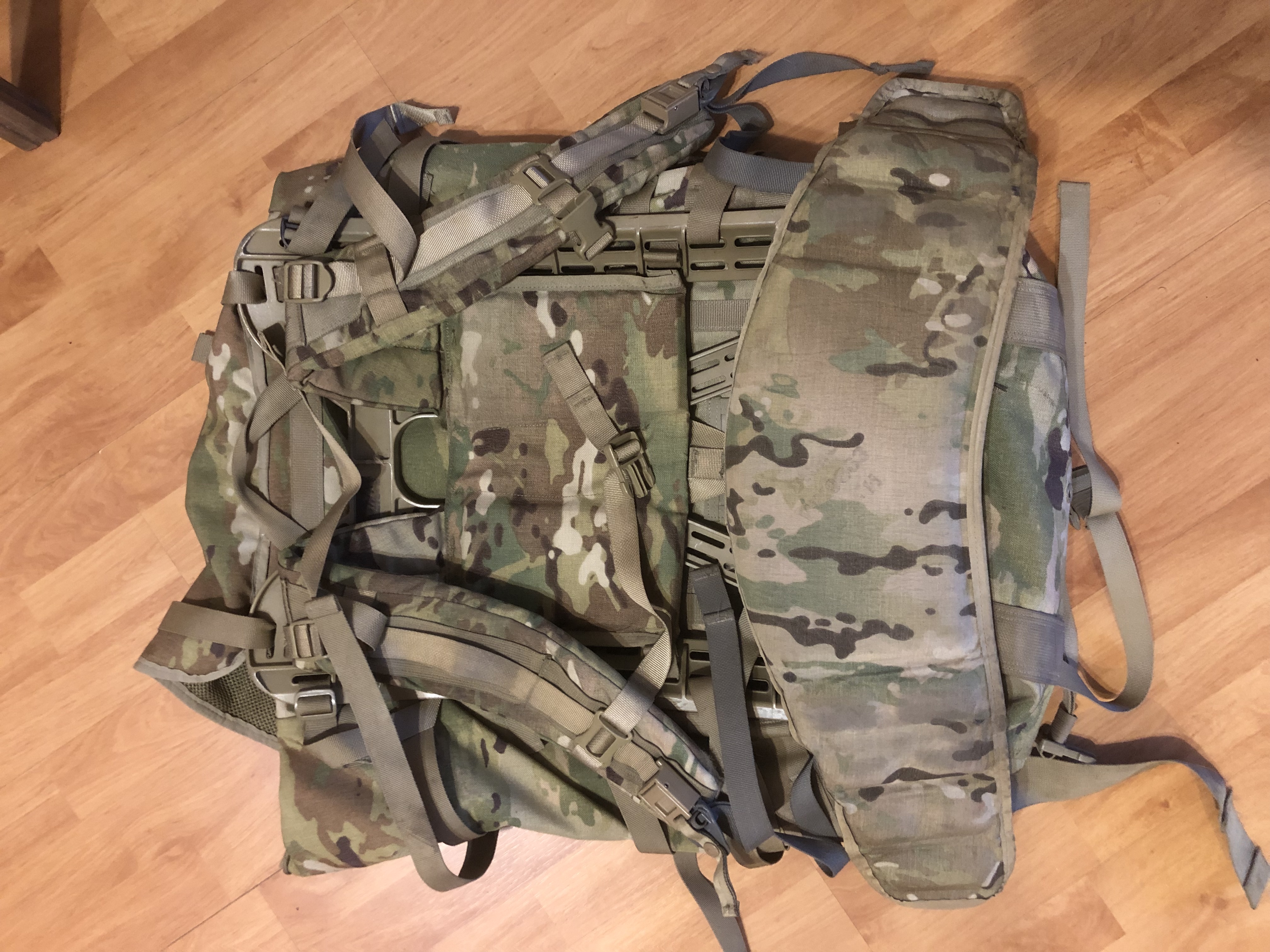 MT MOLLE II складається з одного основного рюкзака, двох бічних підсумків, міцного полімерного каркаса Gen IV, поясного ременя, посилених плечових лямок.